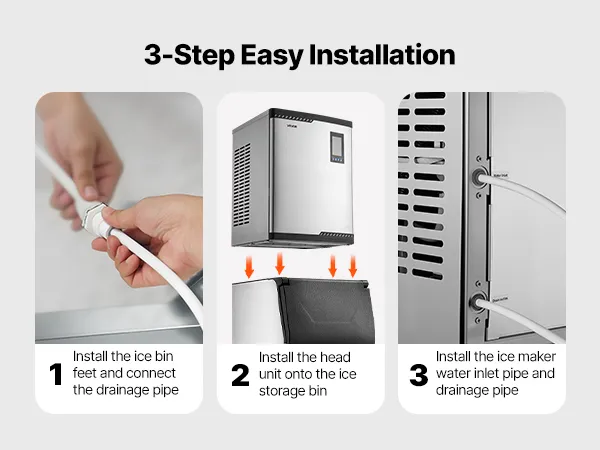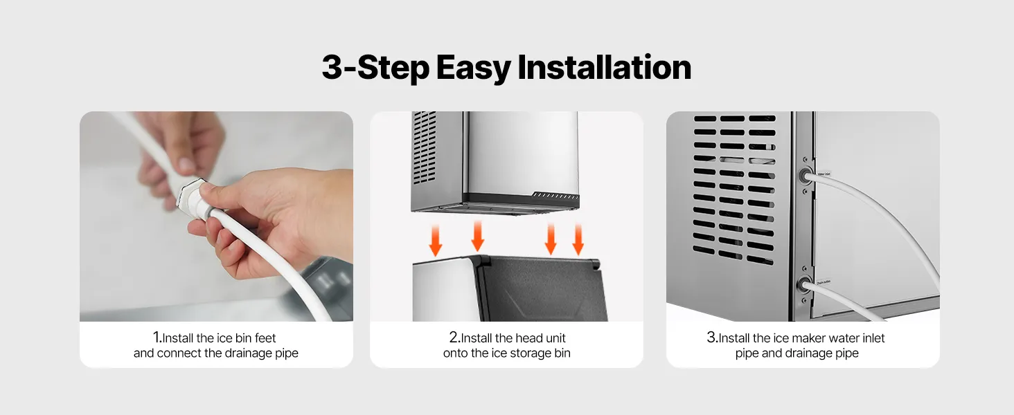 The ice maker is easy to install, and the gravity drainage design ensures quick and efficient water discharge.