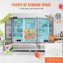 The VEVOR reach-in fridge is built with corrosion-resistant stainless steel, making it durable and stylish. It's also easy to clean and maintain. The refrigerator features 12 adjustable shelves, each capable of holding up to 88.18 lbs, providing enough storage space. The adjustable shelving makes organizing ingredients simple, promoting a tidy and efficient kitchen. Its strong construction ensures long-lasting use, designed to withstand the demands of a busy kitchen while providing reliable service
