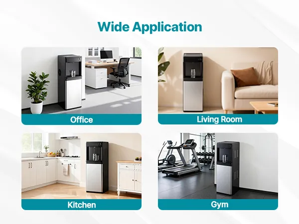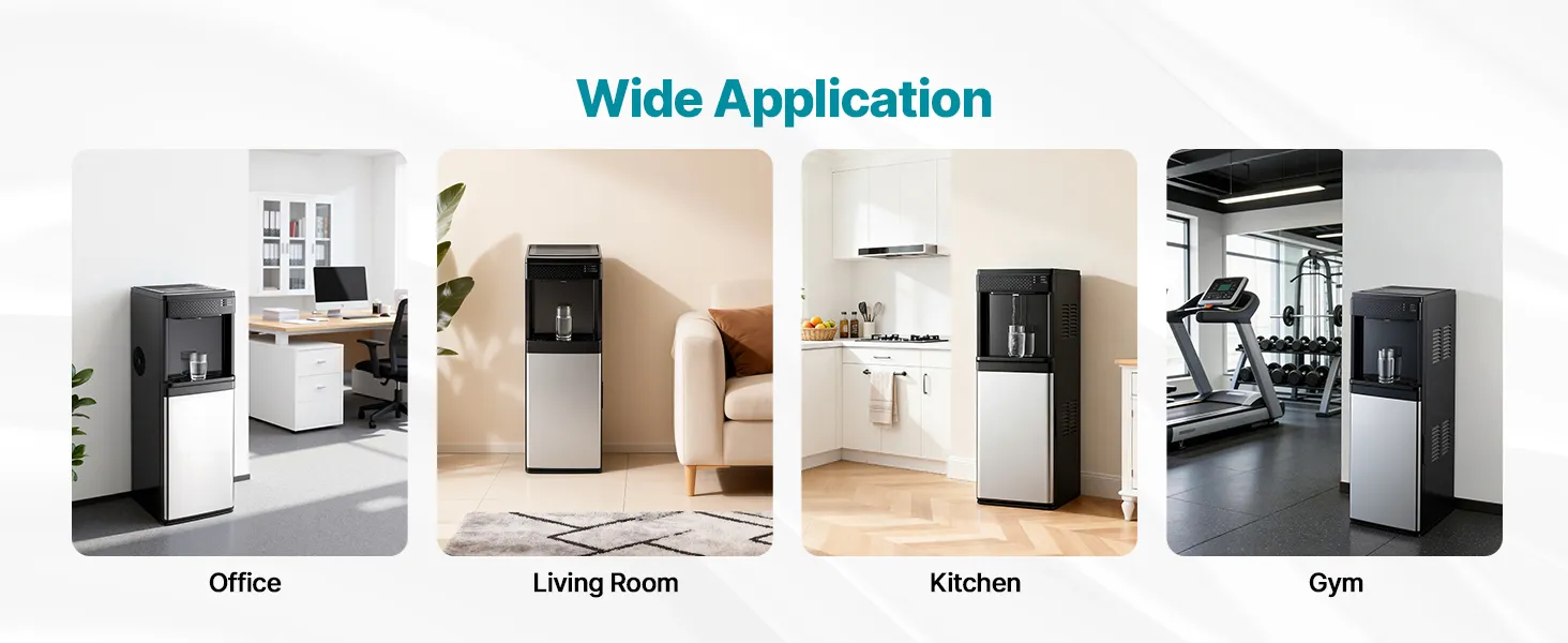 Suitable for Multiple Spaces: This water dispenser with an ice maker is well-suited for use in kitchens, offices, living rooms, and gyms. It delivers ice, cold water, and room-temperature water to support different daily activities