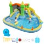 Featuring a large jumping area and a smooth slide, this water bouncer castle offers multiple ways for kids and families to enjoy shared playtime. The innovative water ring toss game adds interactive fun, letting children enjoy playful moments and group activities with friends during outdoor play.