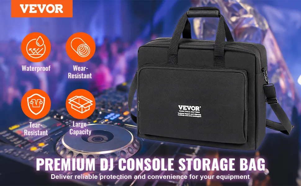 VEVOR Padded DJ Mixer Gig Bag, 1200D Oxford Fabric, DJ Gear Carry Bag with a Storage Pocket 4.92 ft Removable Shoulder Strap 0.39 in Padding, 19.29 x 8.66 x 15.34 in Storage Case for DJ Controller VEVOR Padded DJ Mixer Gig Bag, 1200D Oxford Fabric, DJ Gear Carry Bag with a Storage Pocket 4.92 ft Removable Shoulder Strap 0.39 in Padding, 19.29 x 8.66 x 15.34 in Storage Case for DJ Controller