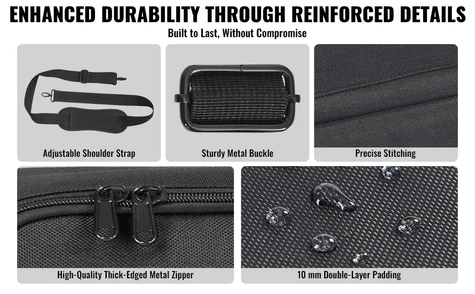 Featuring a rubber base to guard against moisture and a thick-edged metal zipper for smooth, secure closures. The 0.39 in/10 mm dual-layer padding offers softness and solid support, ensuring your instruments are shielded from every angle.