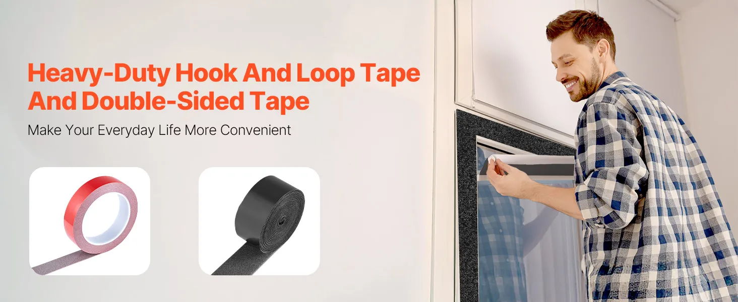 The VEVOR self-adhesive hook and loop tape is a reusable, strong, and simple solution for organizing and fixing needs. Whether making quick car repairs, organizing tools in your garage, or decorating your home, it makes the job cleaner and easier. It gives a firm hold without using messy glues, hammering, or drilling. With its reusable design, waterproof backing, or heavy-duty adhesive, this tape provides the best. This hook and loop adhesive tape is a must-have for anyone who wants quick, damage-free mounting. This set offers you the flexibility to secure, fix, or hang items anywhere, anytime.