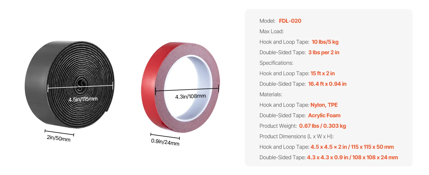 The sticky-back hook and loop strips are designed to help you organize, hold, or mount items with ease. It is perfect for when you need something that holds perfectly. It can also be removed without a mess. The combo set includes one roll of waterproof double-sided tape and one roll of heavy-duty hook-and-loop tape. This tape is suitable for several projects. You can use it to fix interior parts in your cars, hang frames, or tidy up tools and cables. It saves you time, effort, and the need for screws or drills while keeping your surfaces safe and clean.