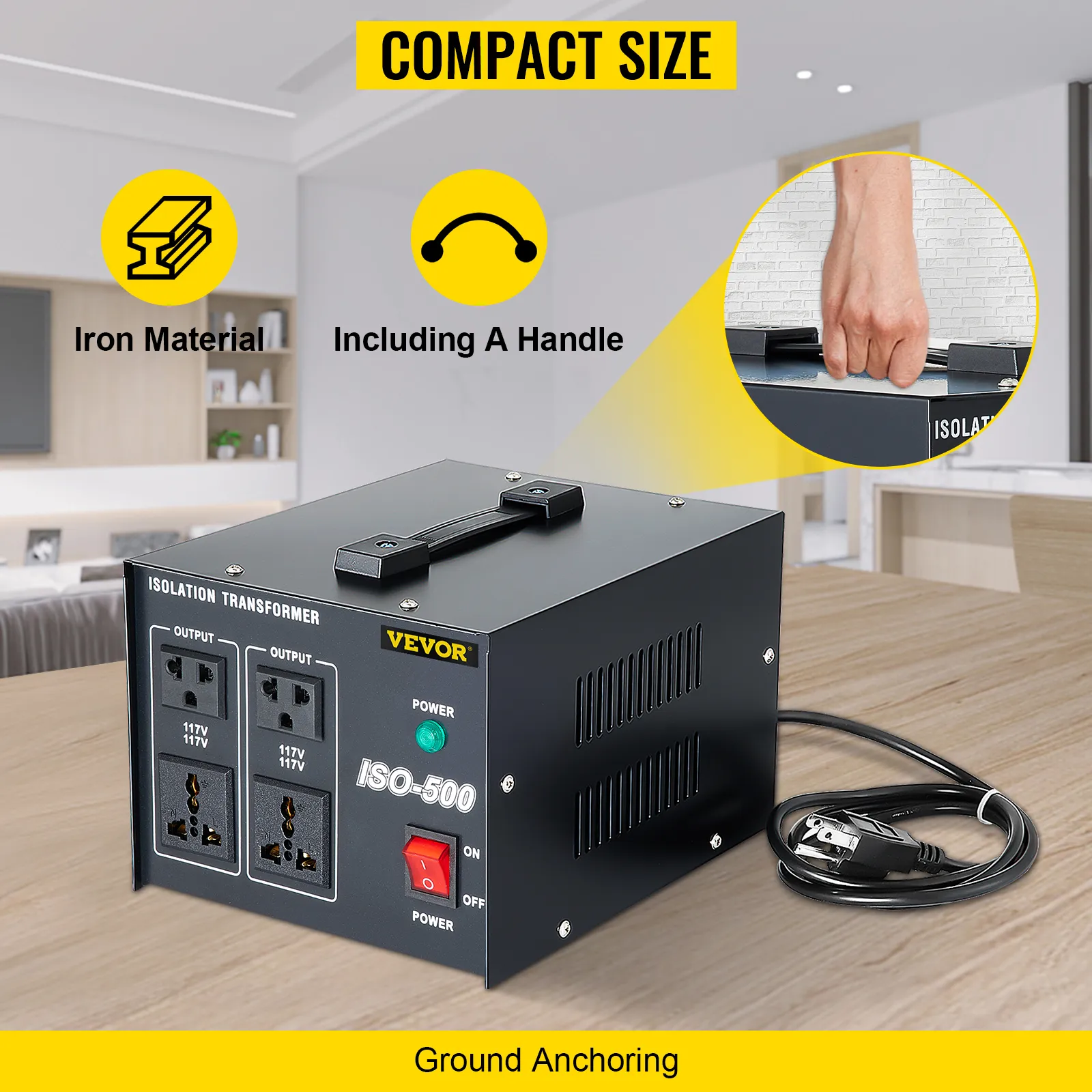 Portable and Durable: AC isolation transformer is constructed of iron iron material, solid and durable. The compact size means this machine won't occupy your space, and you can put it in any small corner. A convenient handle is designed for easy carry and transportation.
