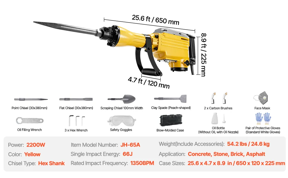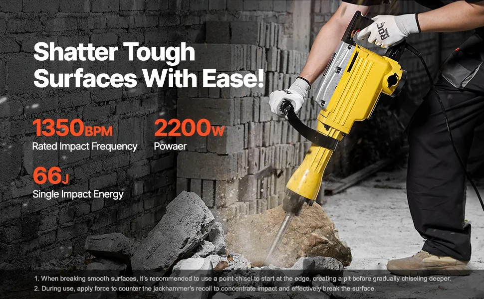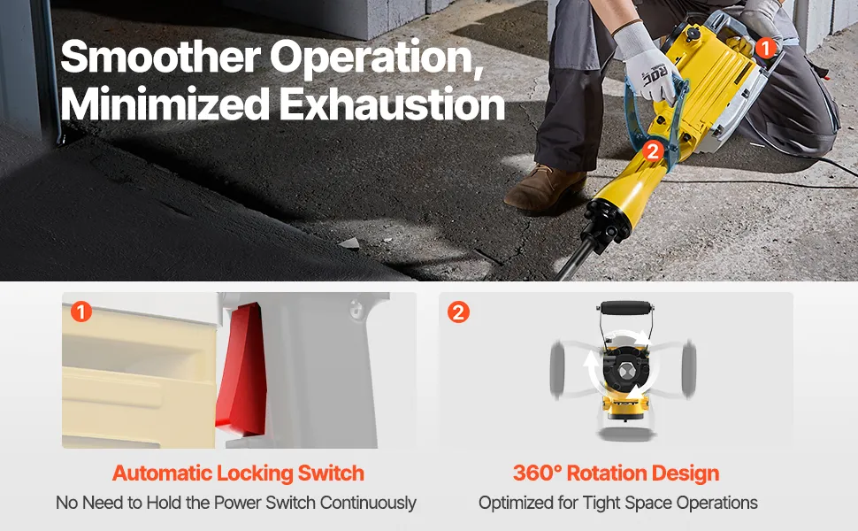 This powerful motor delivers consistent power output and handles tough materials. It provides an impact frequency of 1350 BPM and makes breaking through tough materials a breeze. With this impact rate, the motor delivers rapid, efficient demolition. This motor lets you do more work in less time. It’s essential for large projects and tight schedules. It handles heavy-duty tasks without overheating and losing efficiency. It reduces fatigue and strain on your body and prevents stooping or slowing in the middle of work. It gives users high-impact, faster work and reduces physical effort.