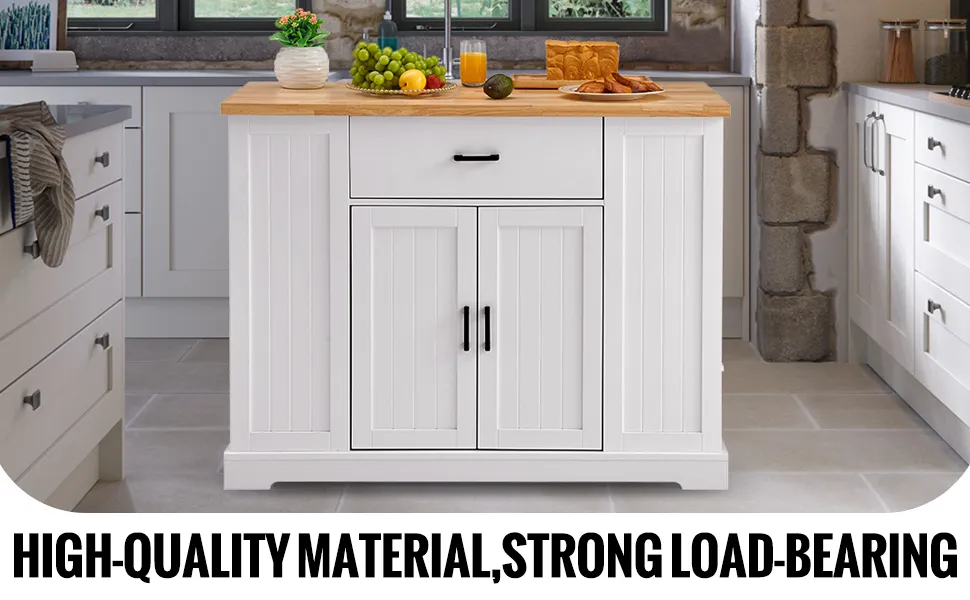 • Durable and Sturdy: This 46x22x36 inch kitchen island features a high-quality solid rubberwood top and MDF material, making the surface stain-resistant, waterproof, sturdy, and durable. It provides more storage and work space for your kitchen with flexible mobility.