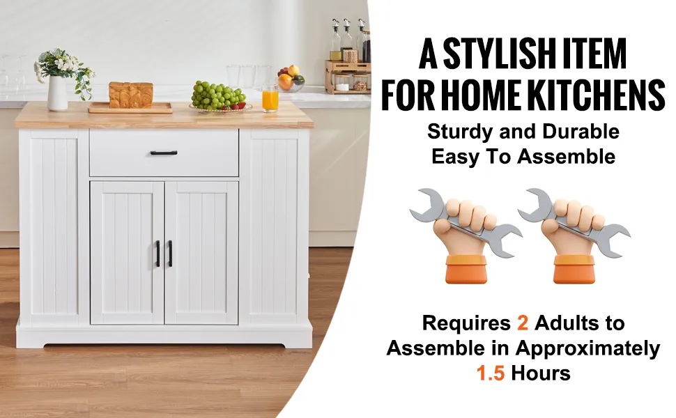 • Easy to Install: The simple design of this kitchen island offers a unique aesthetic experience, and it is easy to install with ample accessories and an installation video for reference.