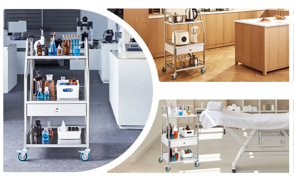 It is perfect for medical and dental settings. It has a stainless steel construction, so it’s easy to sterilize. The cart can store medical supplies, tools, and equipment. This makes it easy to sterilize. Can a person use this tool for laboratories? Yes! You can also use the cart for labs. It provides a dependable and mobile work surface. Lockable wheels ensure that it stay in place during use. Our cart suits various medical applications because of its versatile design and functionality. Whether in a hospital, clinic, or lab, this cart meets your needs.