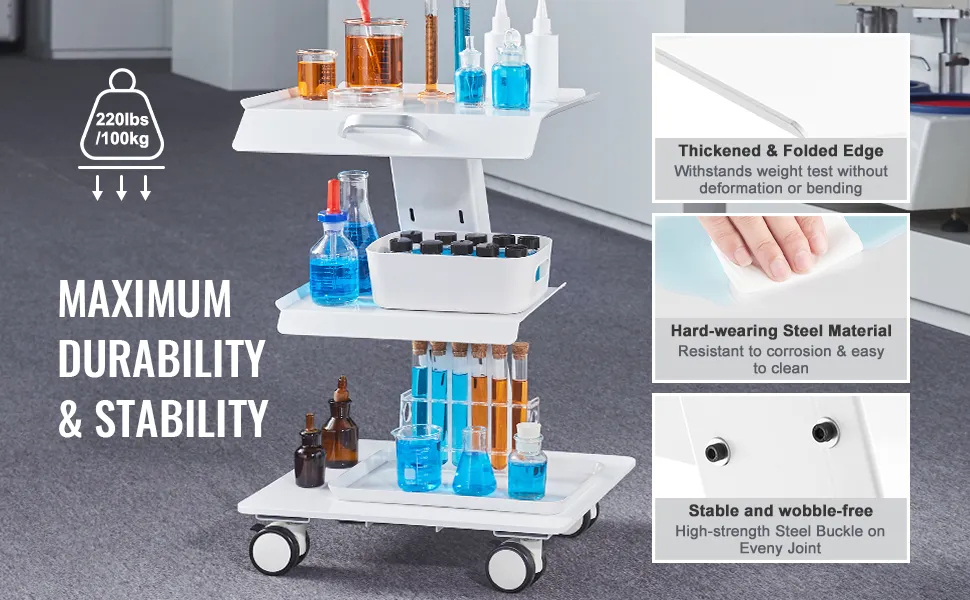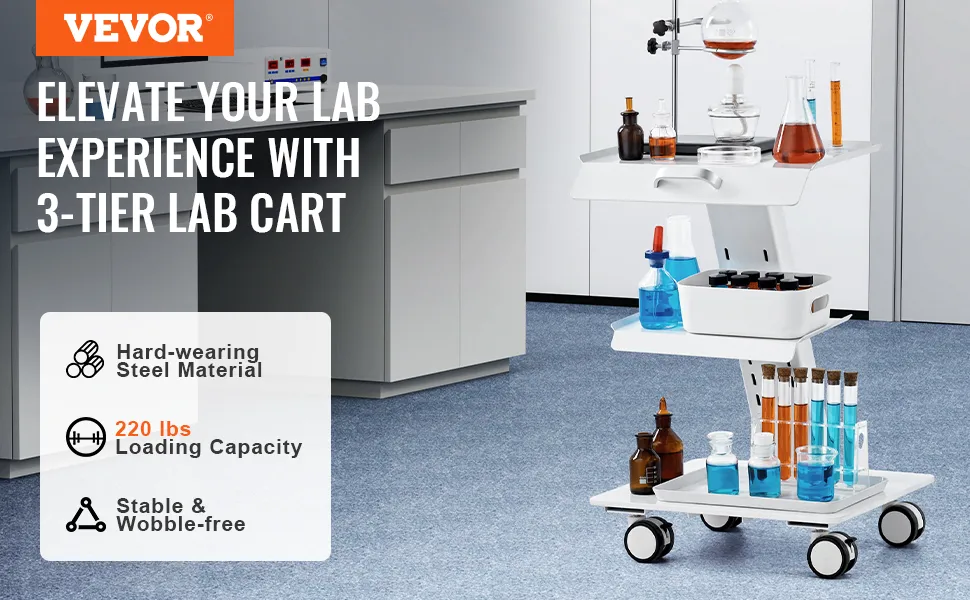The VEVOR lab trolley is built to last. It features a strong steel construction that can handle heavy use. The assembly is simple and quick. You just need to attach the wheels. This lab trolley is ideal for labs, clinics, or salons. Its strong build can carry 'up to 220 lbs'. Easy assembly saves time and effort. Start using it immediately after setup. That’s why it makes it pliable for busy environments. The durability ensures long-term use, making the VEVOR laboratory trolley an excellent addition to any workspace.