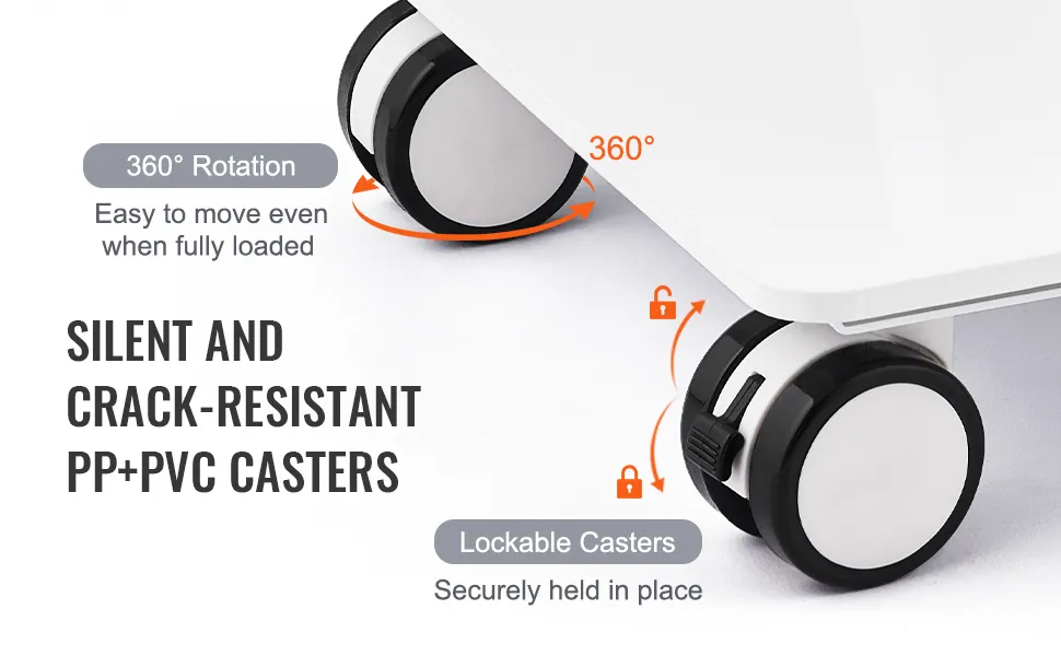 The VEVOR lab trolley has smooth-rolling swivel wheels. These wheels make it easy to move the cart around. You can easily navigate tight spaces effortlessly. The wheels allow for 360-degree rotation. This feature enhances maneuverability. Two of the wheels are lockable. It ensures stability when you need to keep the cart in place. High-quality wheels glide smoothly on various surfaces. Whether you are moving it on tiles or carpet, it performs well. So this makes it versatile for different environments. Ease of movement saves effort and time. You can transport items with minimal hassle. Our lab trolley provides practical solutions for mobility.