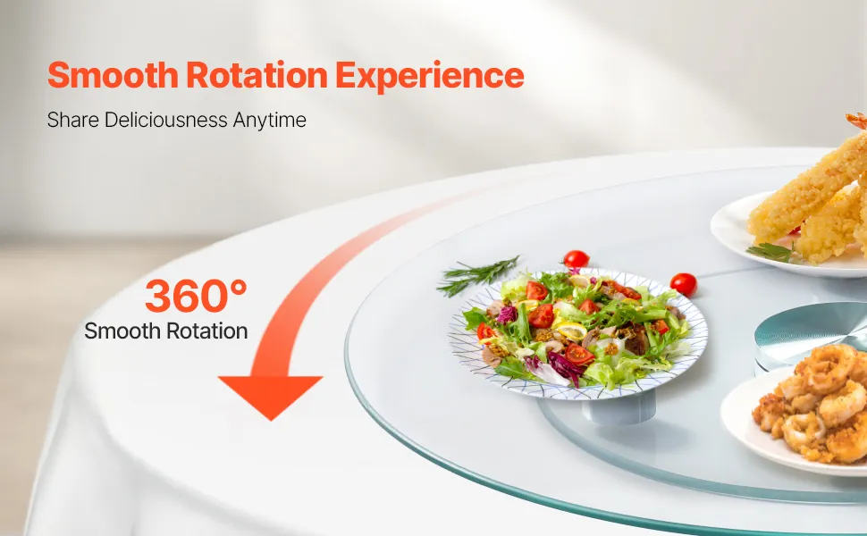 360° Smooth Rotation: This glass Lazy Susan turntable, with aluminum alloy bearings, ensures a smooth and silent rotation with every turn, promoting efficient interaction around the dining table. Each diner can easily reach the food, enhancing the interactive experience during family meals.
