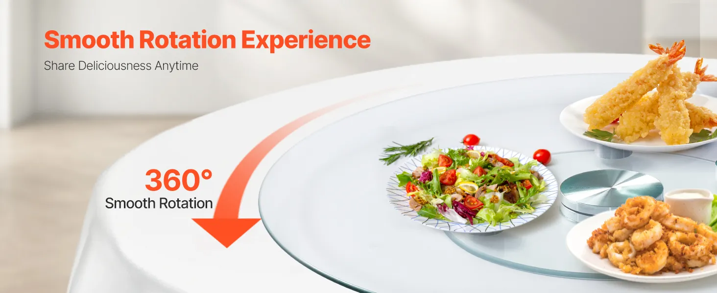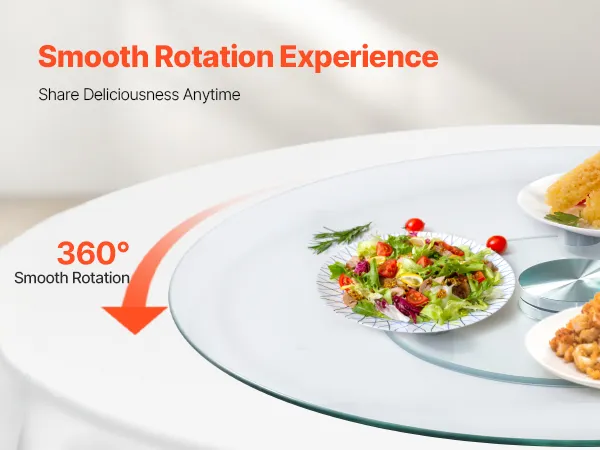 Rotación suave de 360°: Este plato giratorio de vidrio Lazy Susan, con rodamientos de aleación de aluminio, garantiza una rotación suave y silenciosa en cada giro, lo que facilita la interacción en la mesa. Cada comensal puede acceder fácilmente a la comida, lo que mejora la interacción durante las comidas familiares.