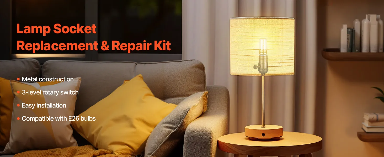 Made of durable metal, this lamp repair kit is compatible with standard E26 bulbs and fits various bulb types. The 3-level rotary switch function allows you to adjust brightness. Simple installation requires no complex tools, providing your table lamp with a refreshed lighting experience.