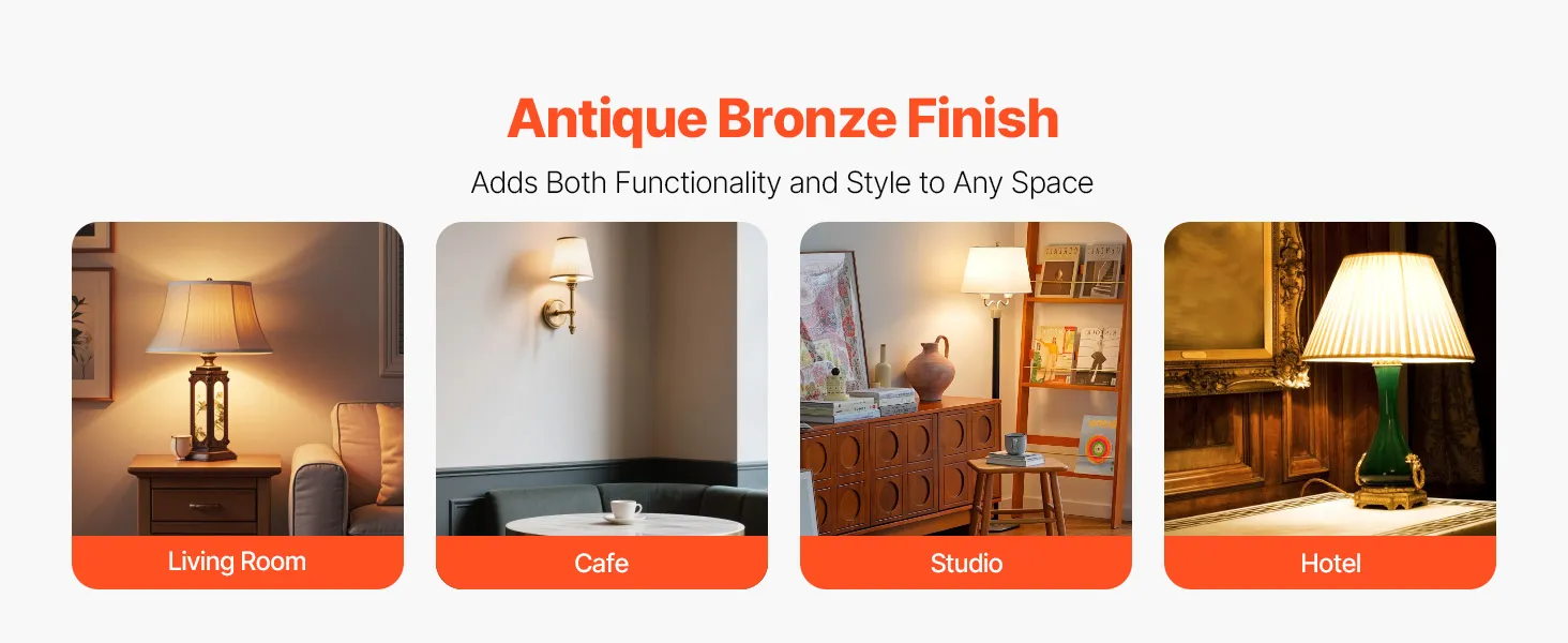 With an antique bronze finish, our lamp repair kit for table lamps blends in a cozy living room, stylish coffee shop, creative studio,and high-end hotel, enhancing the overall aesthetic. The bronze luster not only showcases taste but also provides practicality, making your space bright and cozy.