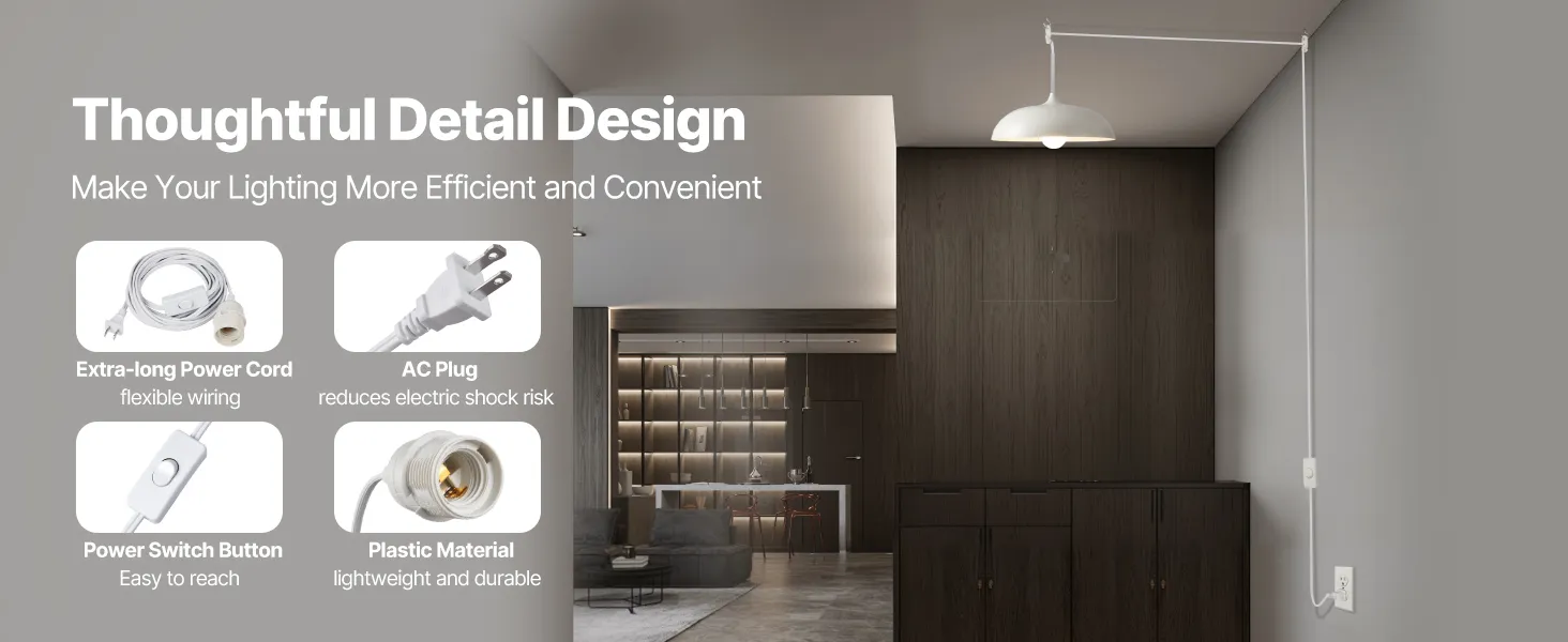 Extra-Long Cord with Switch: This hanging light cord includes a 16.08 ft power cord, providing great layout flexibility. You can adjust the hanging height of the lamp, while the switch position design allows you to easily control the switch