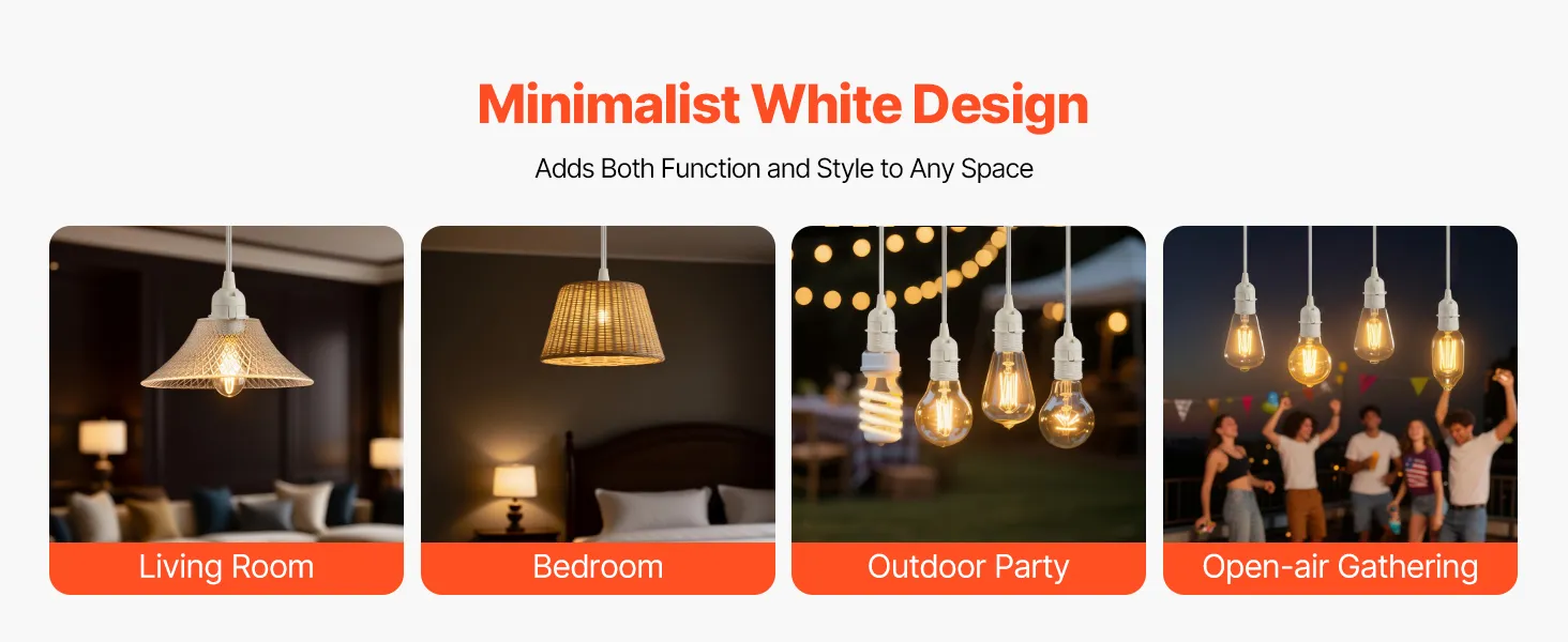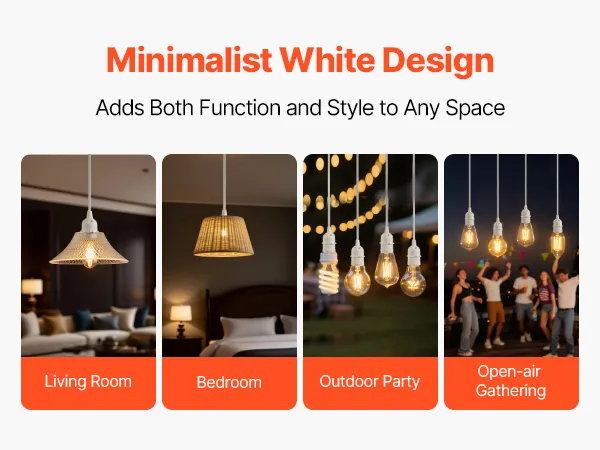 The simple white finish blends into different settings. Whether in a cozy bedroom, spacious living room, lively outdoor party, or open-air gathering, this hanging lamp cord fits seamlessly. It not only provides practical lighting but also adds elegance to the space.