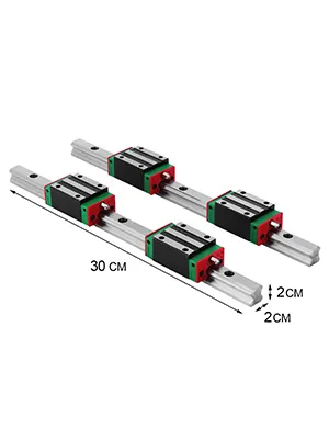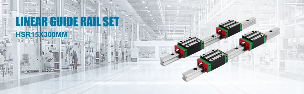 HSR15-300 mm Linear Guide Rail: This linear guide rail set includes 2pcs 12"/300 mm long HSR15 rail shafts and 4pcs bearing blocks. Sliding blocks are used cooperatively with rails, smooth sliding provided by the inside linear bearing.