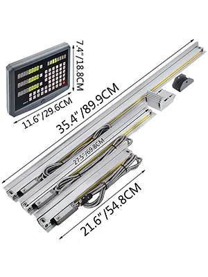 This precision linear scale with the DRO display kit includes three precision linear scales with lengths of 250 mm/10", 550 mm/21.7", and 750 mm/30". Resolution of 5 μm (0.0002") at 20ºC. Precision linear scale with digital readout is widely used on milling machines, drilling machines, grinding machines, lathes, profile projectors, microscopes, video measuring machines, movement control, position monitoring, and coordinate measurement X-Y-Z working table monitor, mechanical control.