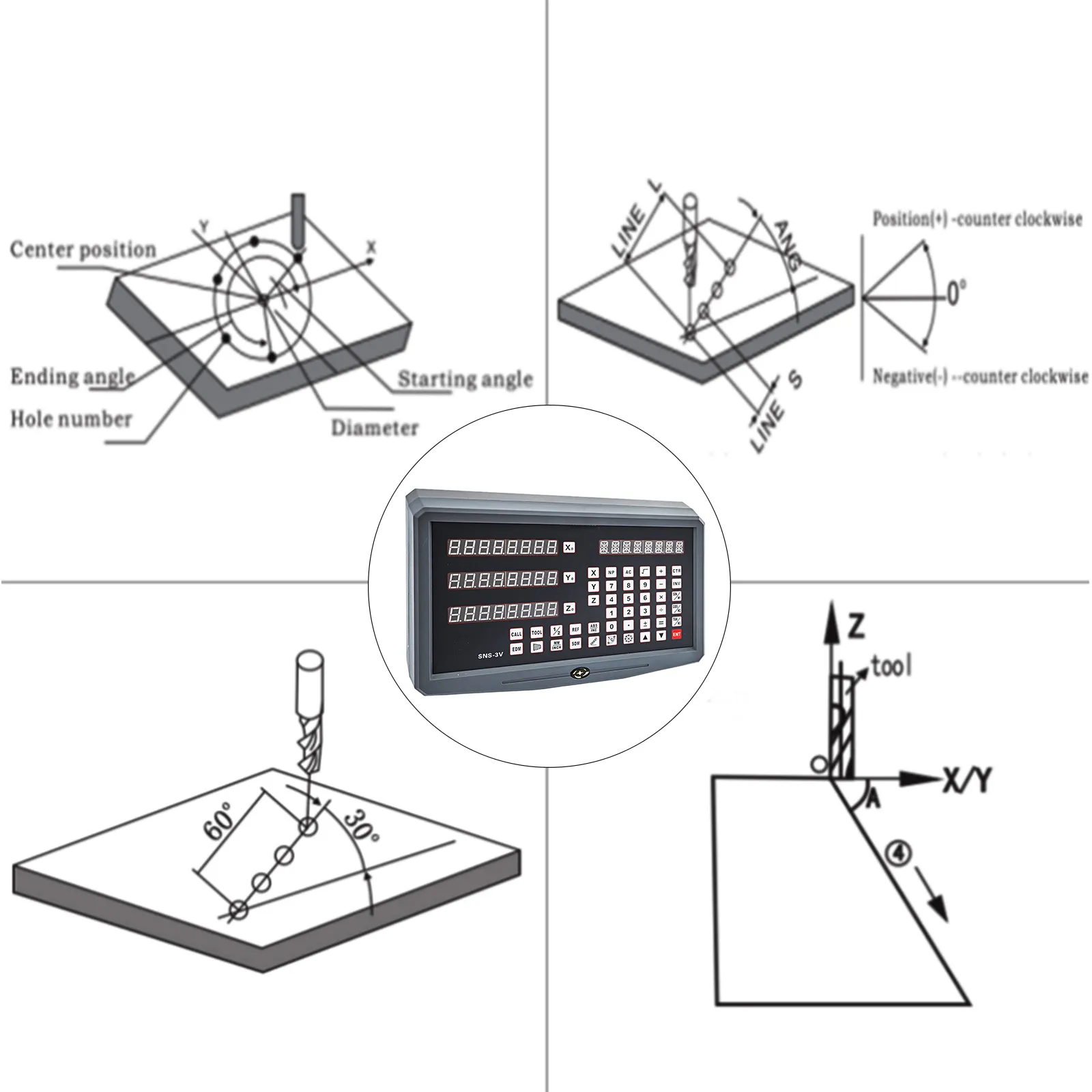 The lathe dro has lots of special functions: circumference holes processing, liner holes processing, ARC processing, oblique processing, slope processing, chambering processing, etc.