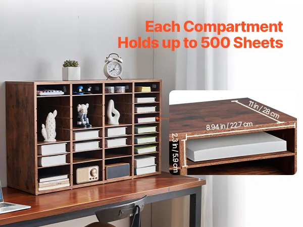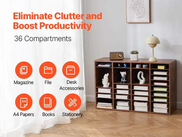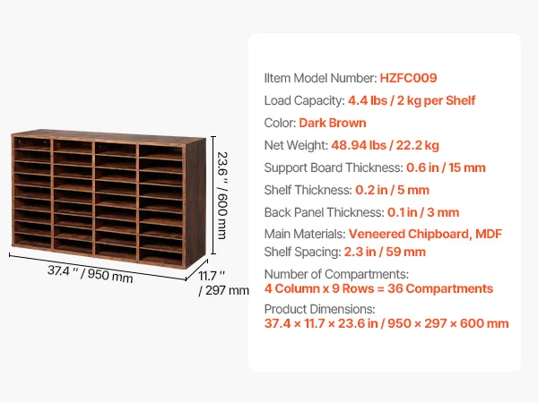 VEVOR Literature Organizer, 36 Compartments Office Mailbox with Removable Shelves, Wood Mailbox Sorter Particle Board Office Home Classroom Storage, File Sorter for File, Document, Paper, Dark Brown