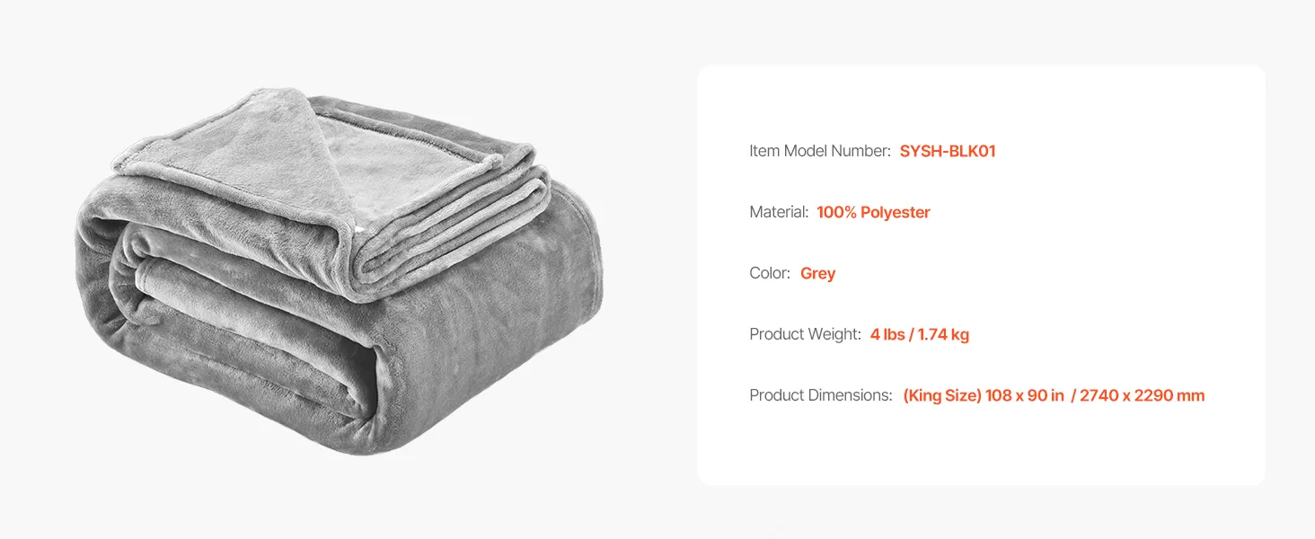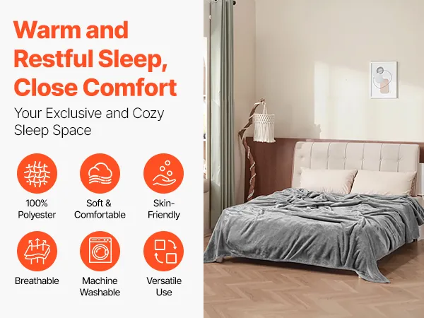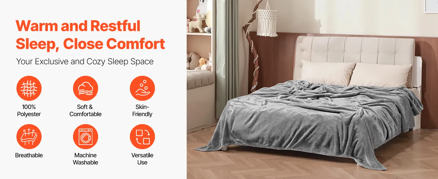 Give your bedroom a makeover with this extravagant VEVOR king-size blanket for beds. It is soft, warm, and gentle on the skin. 100% brushed microfiber makes it suitable for all-season use. The soft texture of the blanket has an inviting and warm effect on the bed. The blanket is lightweight but warm and gives complete freedom to move while resting in comfort. The reinforced stitching makes it robust and provides long durability. It is easy to clean and maintain, which makes it an everyday-use and gifting item as well.