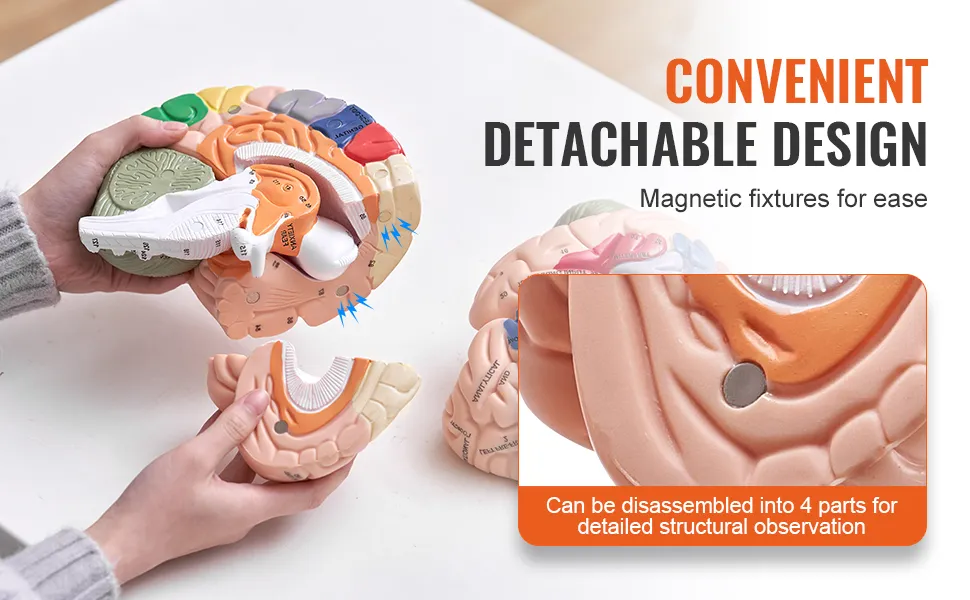The interactive learning tool is a detachable brain model. It is designed to be easily disassembled and reassembled. This hands-on approach helps students better understand the complex structure of the brain. The model's design encourages active engagement, making learning more effective. Its ease of disassembly and assembly makes it pliable for classroom use. Also, it is user-friendly too. So, even those new to anatomy can utilize it effectively.