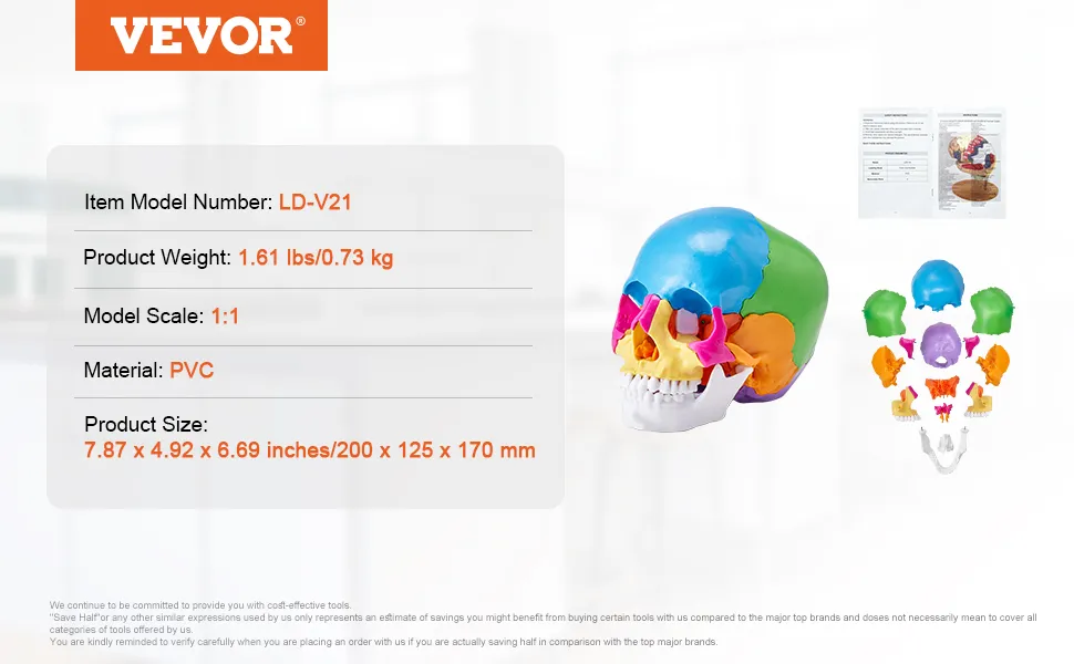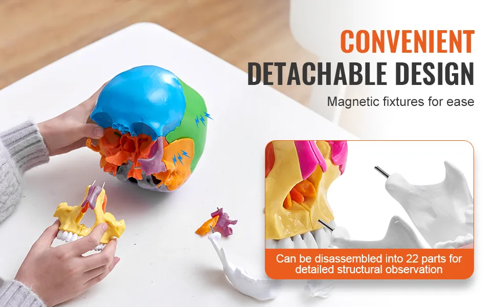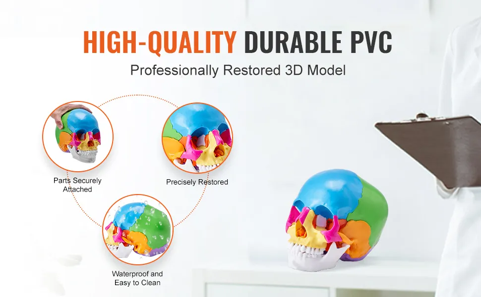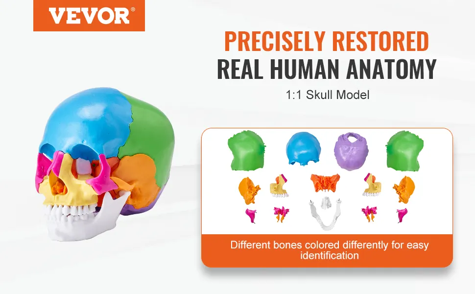 The VEVOR human skull model is simple to disassemble and reassemble. This feature makes it interactive and engaging. It turns the learning process into a fun puzzle. The parts are color-coded, making it easier to follow. The model includes an Igbo diagram to guide the reassembly process. In this way, all parts fit correctly. Memorizing the parts is based on the disassembly and reassembly procedure. Our interactive model makes anatomy lessons better. You can learn and remember the different parts of the skull with ease.