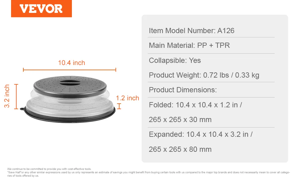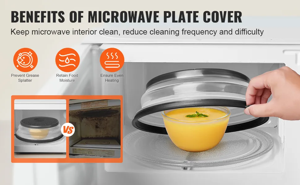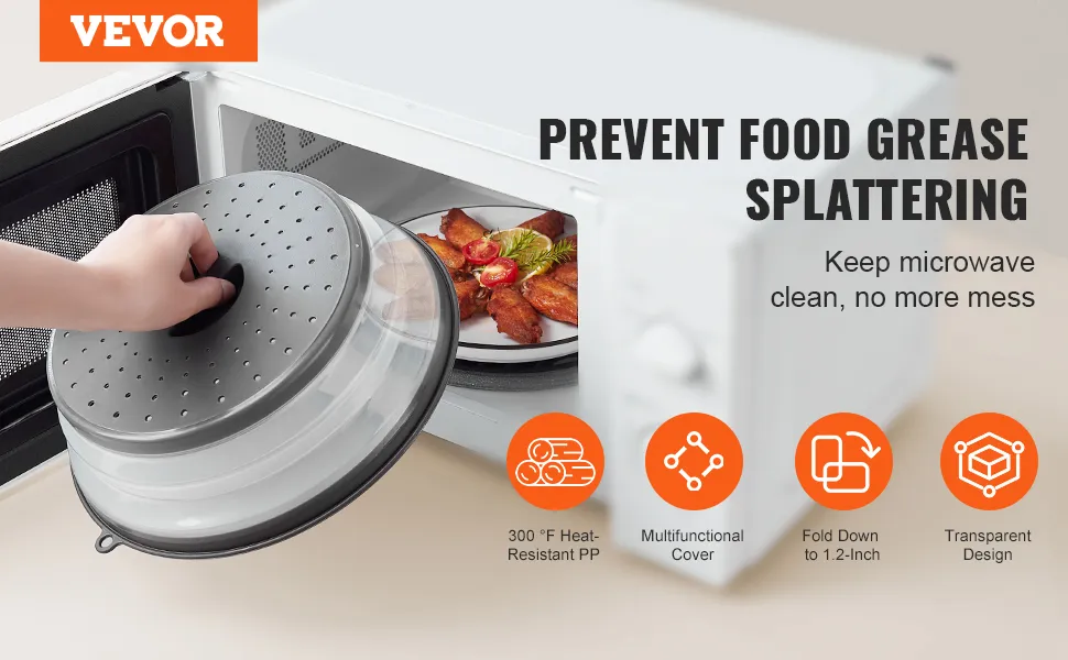The VEVOR food cover for microwave oven will not melt or warp, even at 300°F, and can withstand long-term use with multiple heating and reheating cycles. The microwave cover is produced from high-quality PP + TPR materials that are temperature-resistant and deformation-resistant when in direct contact with food. It remains hard and flat after reheating vegetables, soups, or rice.