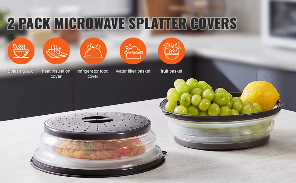 The VEVOR food cover for microwave oven is also a useful colander for keeping fruits, vegetables, and greens clean. The vented design drains water efficiently, turning it into a two-in-one kitchen tool that saves space and reduces clutter.