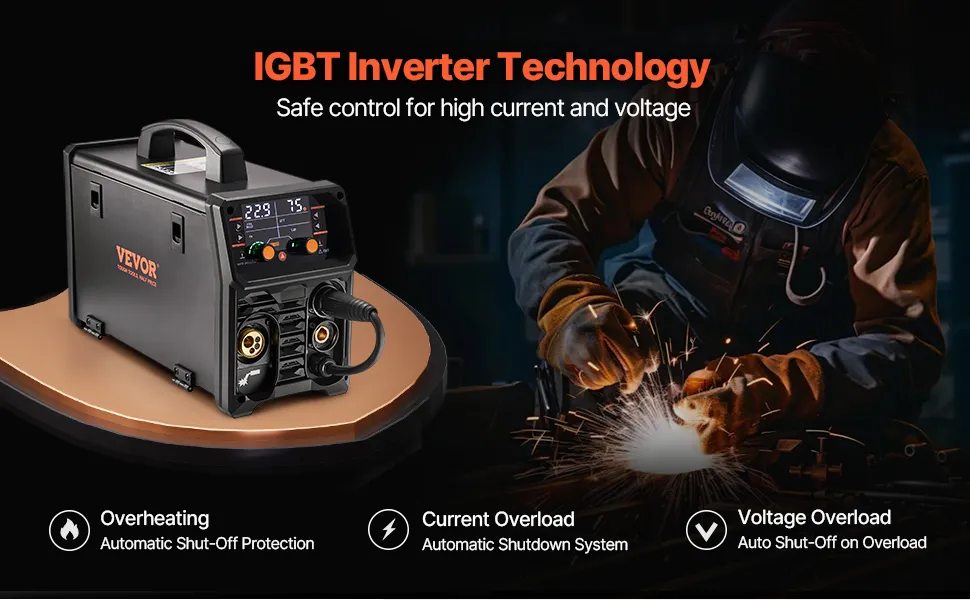 This mig welder features advanced IGBT inverter to achieve safe control, ensuring stable and reliable welding performance. Equipped with multiple protection systems, it provides comprehensive safety for operation - an ideal choice for welding tasks!
