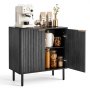 VEVOR Coffee Bar Cabinet, Mid Century Fluted Coffee Bar Table with 2-Tier Storage, Buffet Stand Cabinet with Barn Door, Sideboard Buffet Station for Living Room, Entryway, 31.5 x 14.7 x 31.5 in, Black