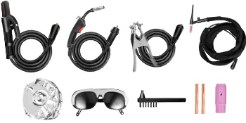 - This welder has provided all the accessories that you need. Some accessories may come within the welder's side panel, simply open it to get those accessories.