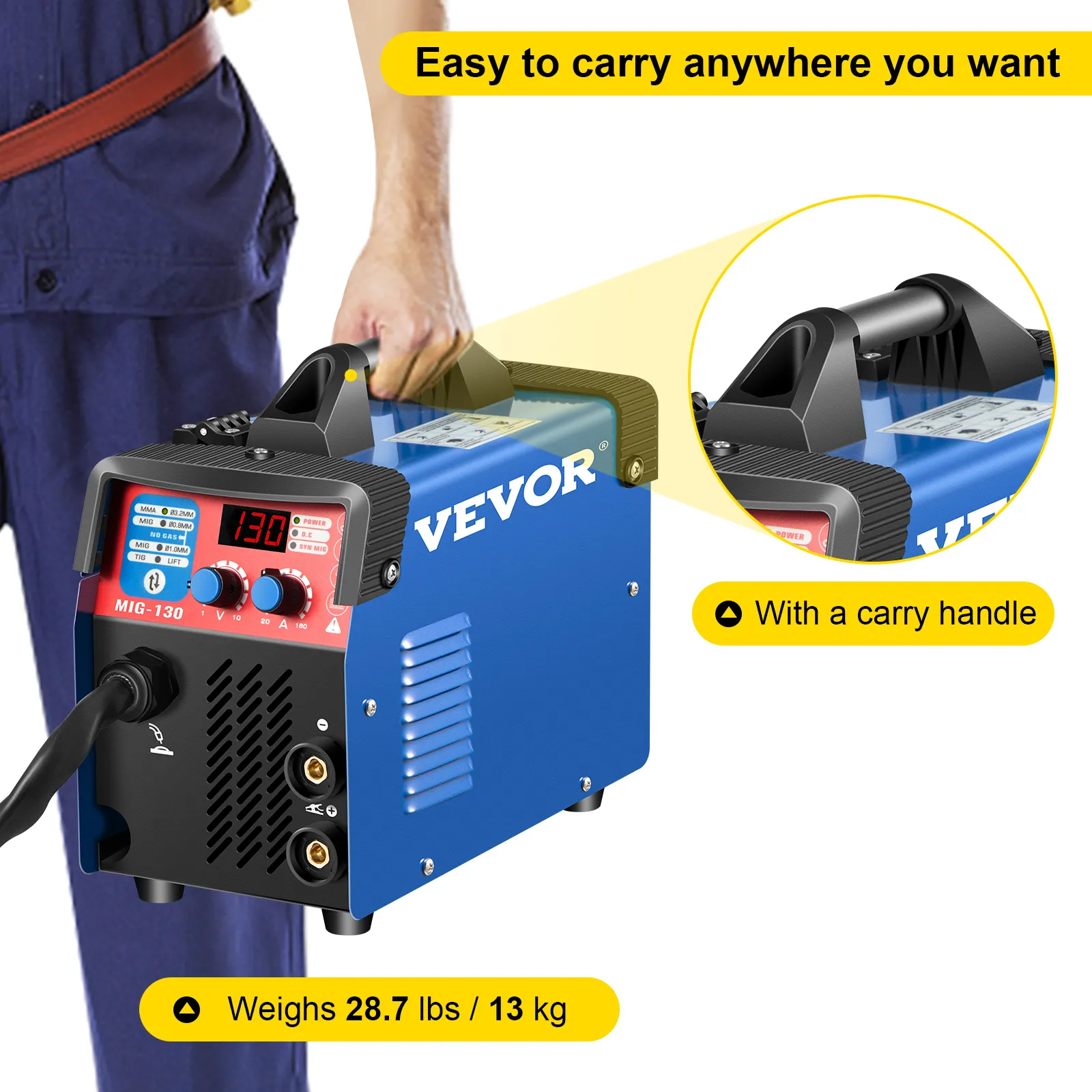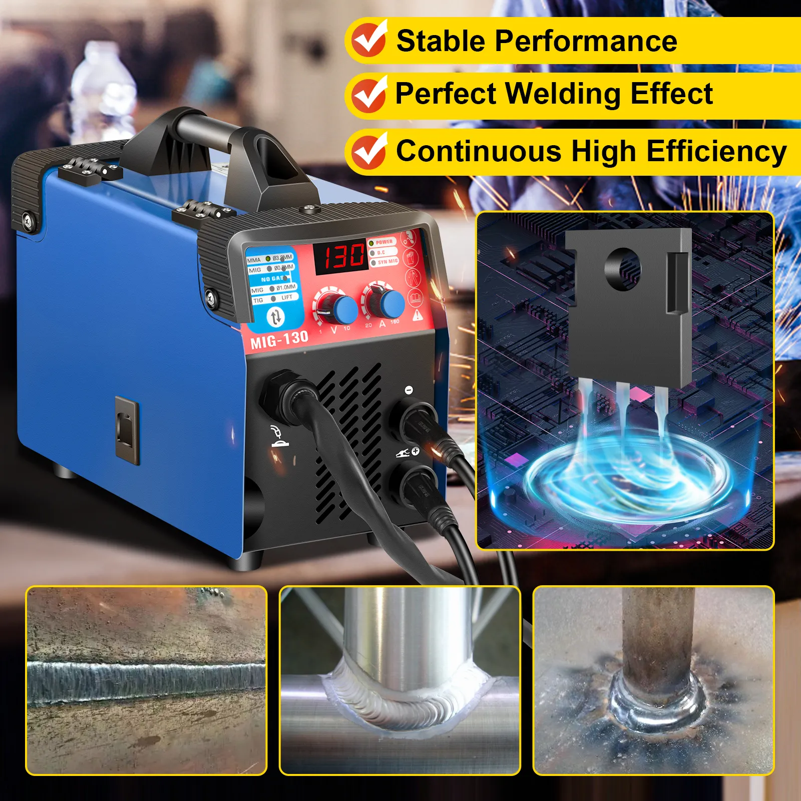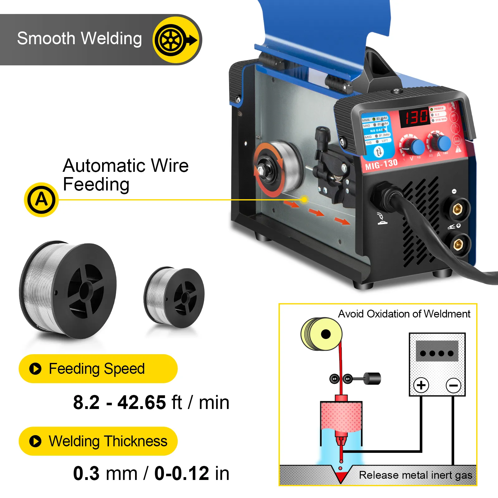 This wire feed welder uses convenient flux-flux-cored wire, which releases metal-inert gas during welding to prevent weldment oxidation. High-quality integrated wire feeder to ensure smooth wire feeding.
