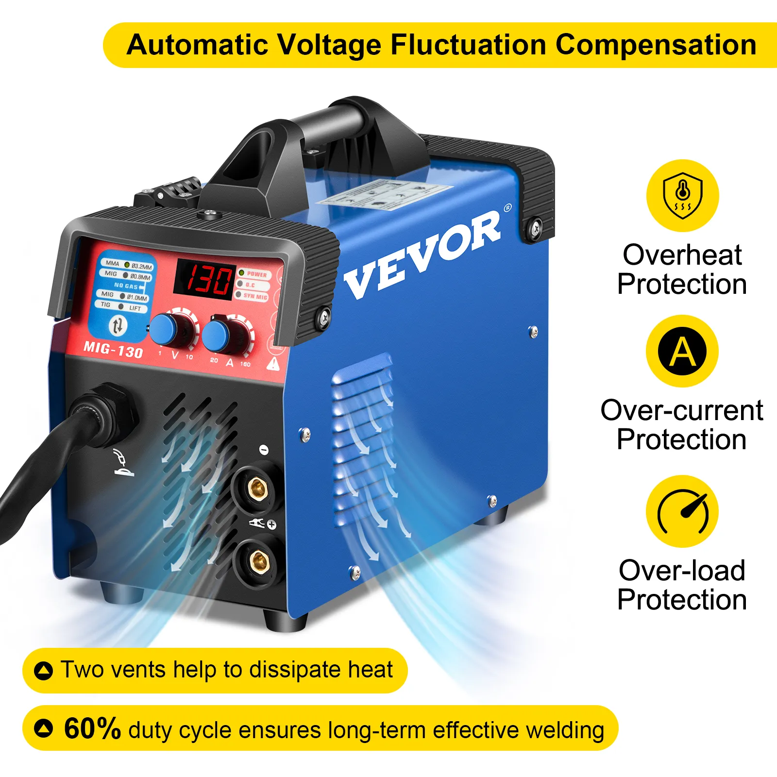 The welding machine has a safety function. The welding machine will automatically shut down when the temperature is too high, or the voltage and current exceed the range. The built-in fan cooling system reduces dust entering the machine and ensures practical long-term welding.