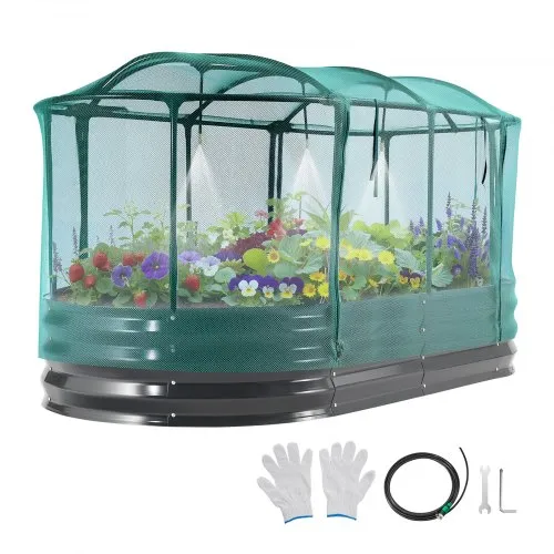VEVOR 2 Pack Galvanized Raised Garden Beds, 4 x 2 x 1 ft, Oval Metal Planter Boxes Kit Outdoor, Bottomless Elevated Garden Box with Gloves, Alu-Zinc, for Planting Flowers Vegetables, Deep Wood Grain