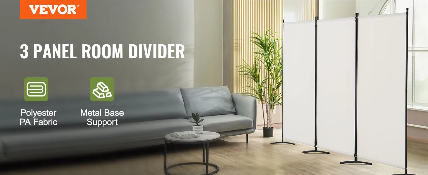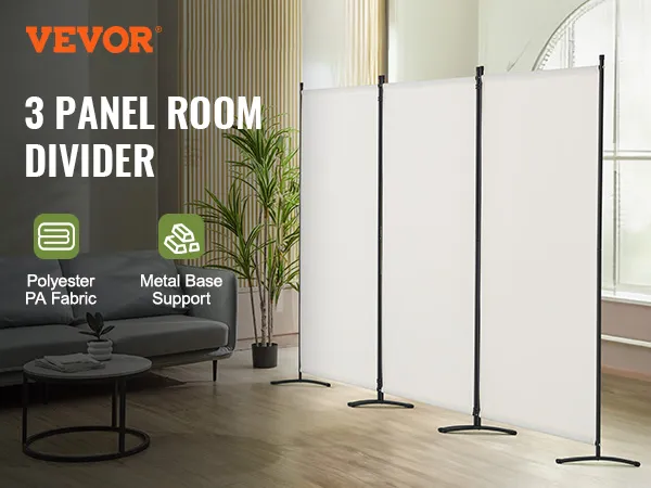 Biombo VEVOR de 3 paneles y mamparas plegables de privacidad, separador de tela para oficina, dormitorio, comedor y estudio, independiente, color blanco