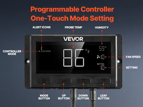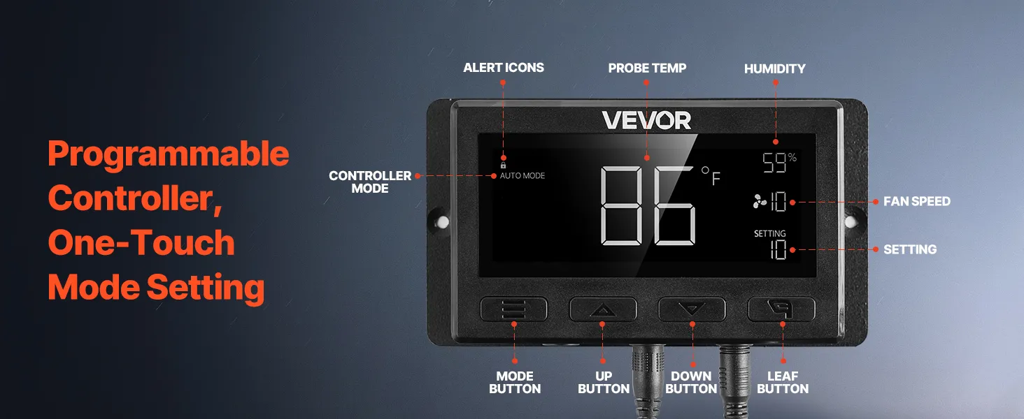 Smart Programming: This fan features an intelligent controller with temperature and humidity triggers, offering up to 10 speed settings that automatically adjust to changing conditions. Multiple modes, timer and alarm, full control for any situation