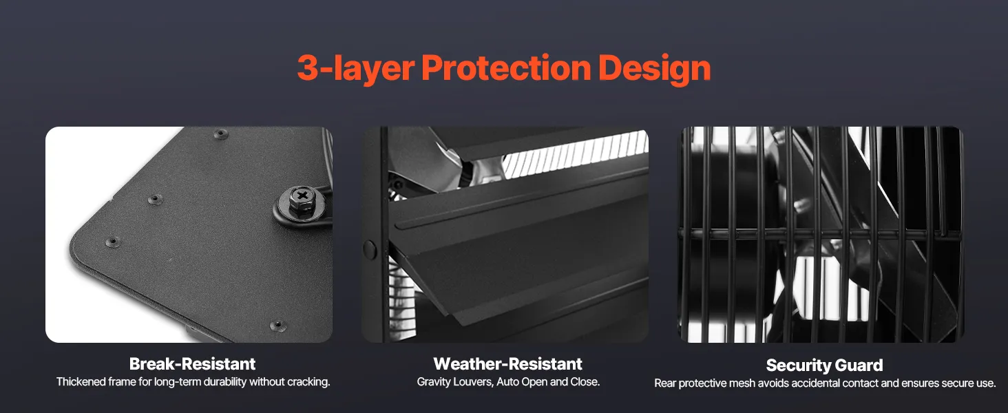 Rain Guard: Shutters open when powered for ventilation and deodorizing, then close when off to block rain and small things, reliable protection for an attic exhaust fan setup
