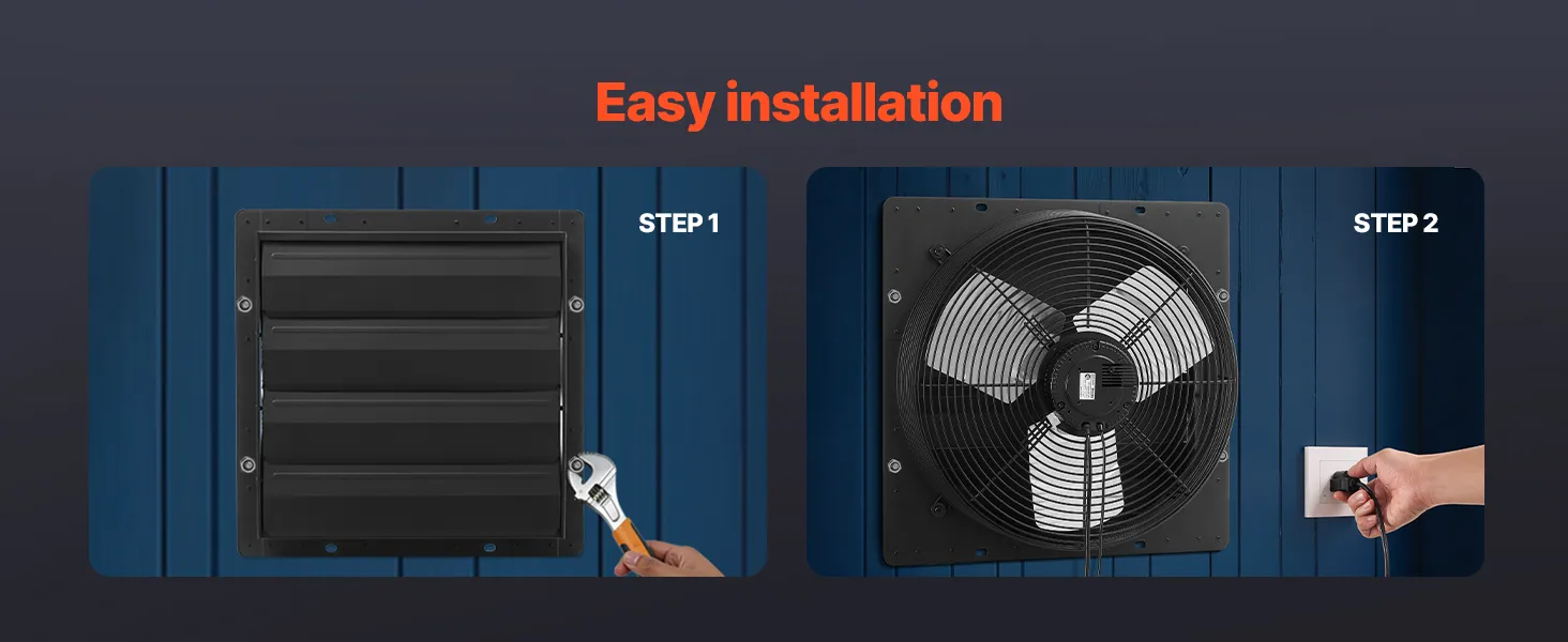 Rapid Venting: This shutter exhaust fan delivers 2900 CFM to quickly expel stale air, floating dirt, heat, and smells, keeping indoor air fresh. Also works as a high-airflow exhaust fan for sheds and workshops