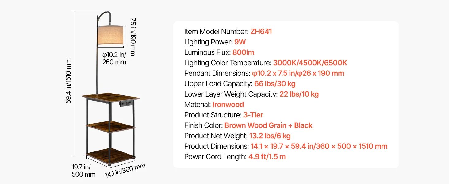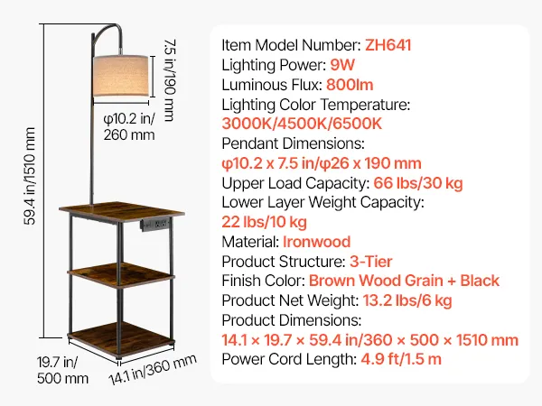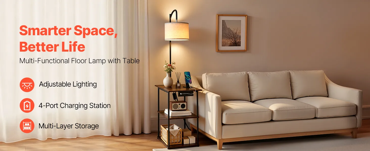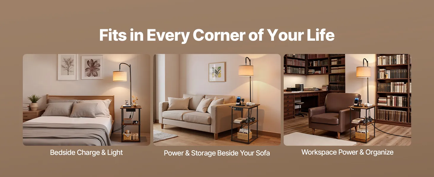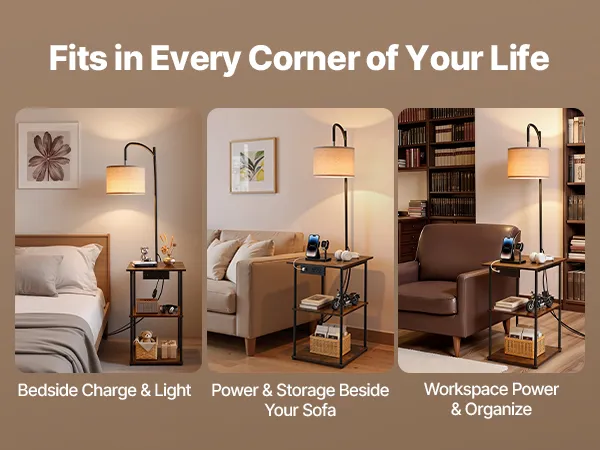 3-in-1 End Table: This floor lamp with table brings storage, lighting, and charging together to maximize function in small spaces. Its mix of rustic farmhouse style and metal industrial design blends easily into any room, elevating your home’s look
