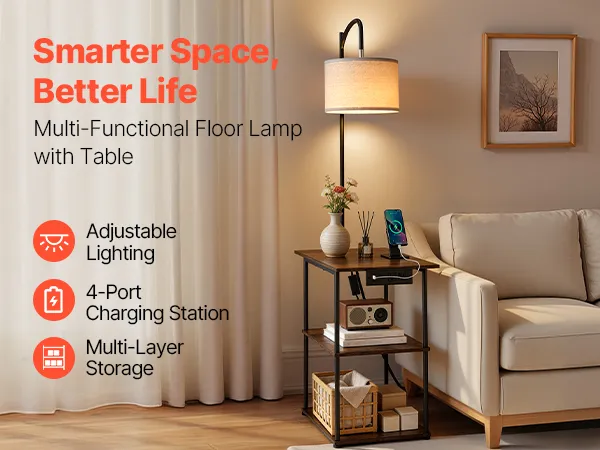 3-in-1 Floor Lamp with Table
