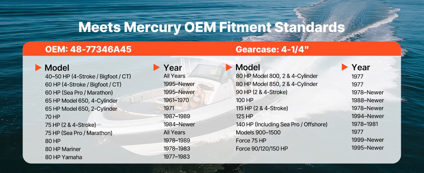 Precise Compatibility: Our three-blade outboard propeller is built for selected Mercury 40–140 HP outboard engines with a 4-1/4 in gearcase and right-hand rotation. It can be used as a direct replacement