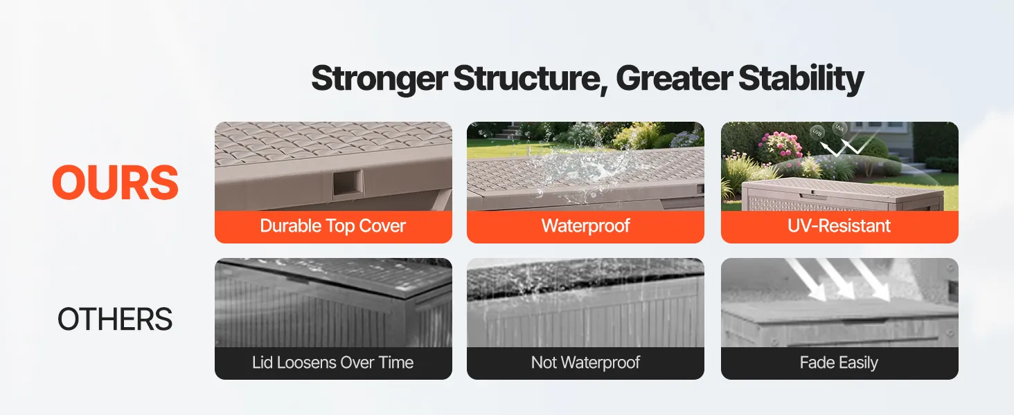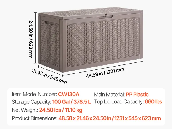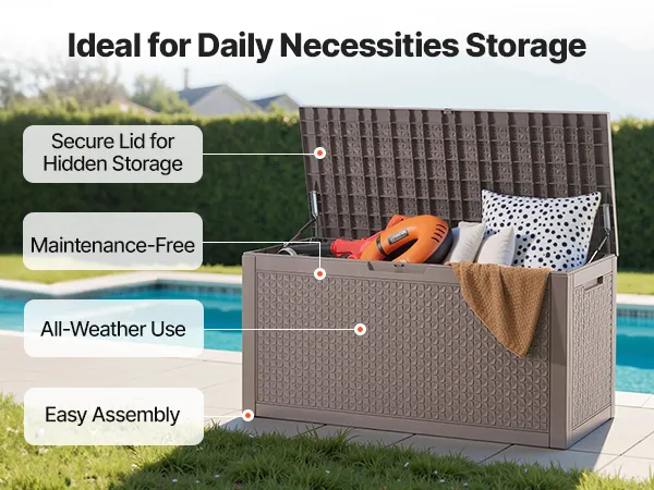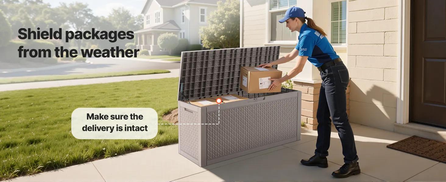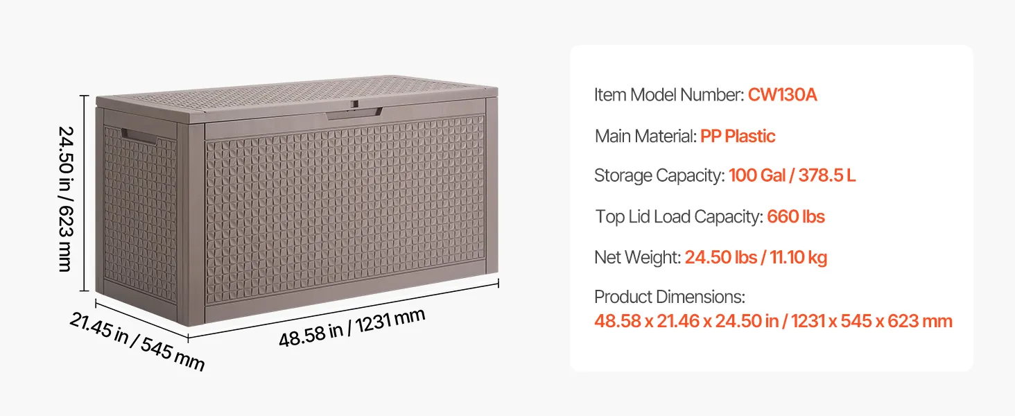 Huge Storage Space: This outdoor storage box offers a 100-gallon capacity to hold more items. Create the ideal space for everything—gardening tools, seasonal patio cushions, or packages all stay neatly organized