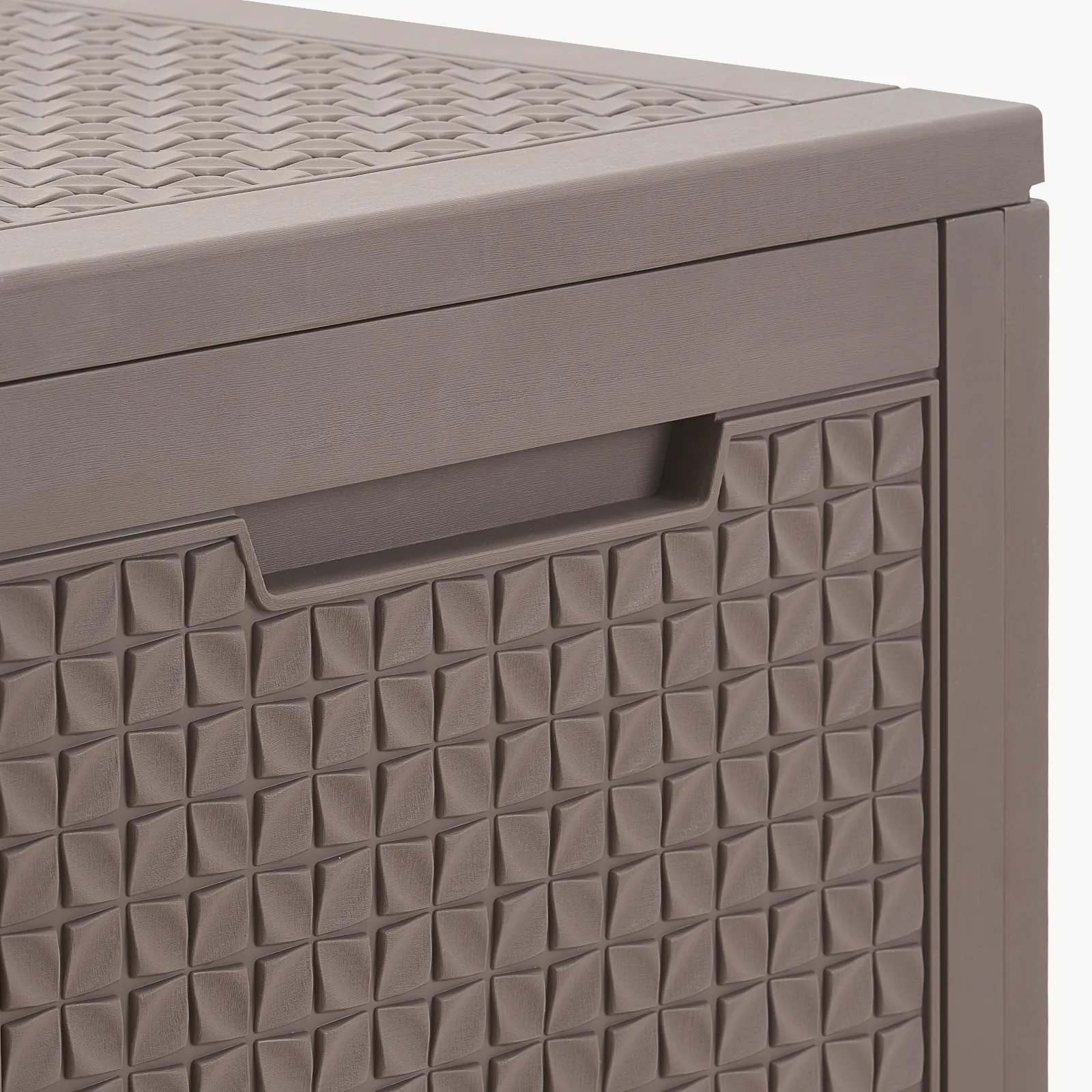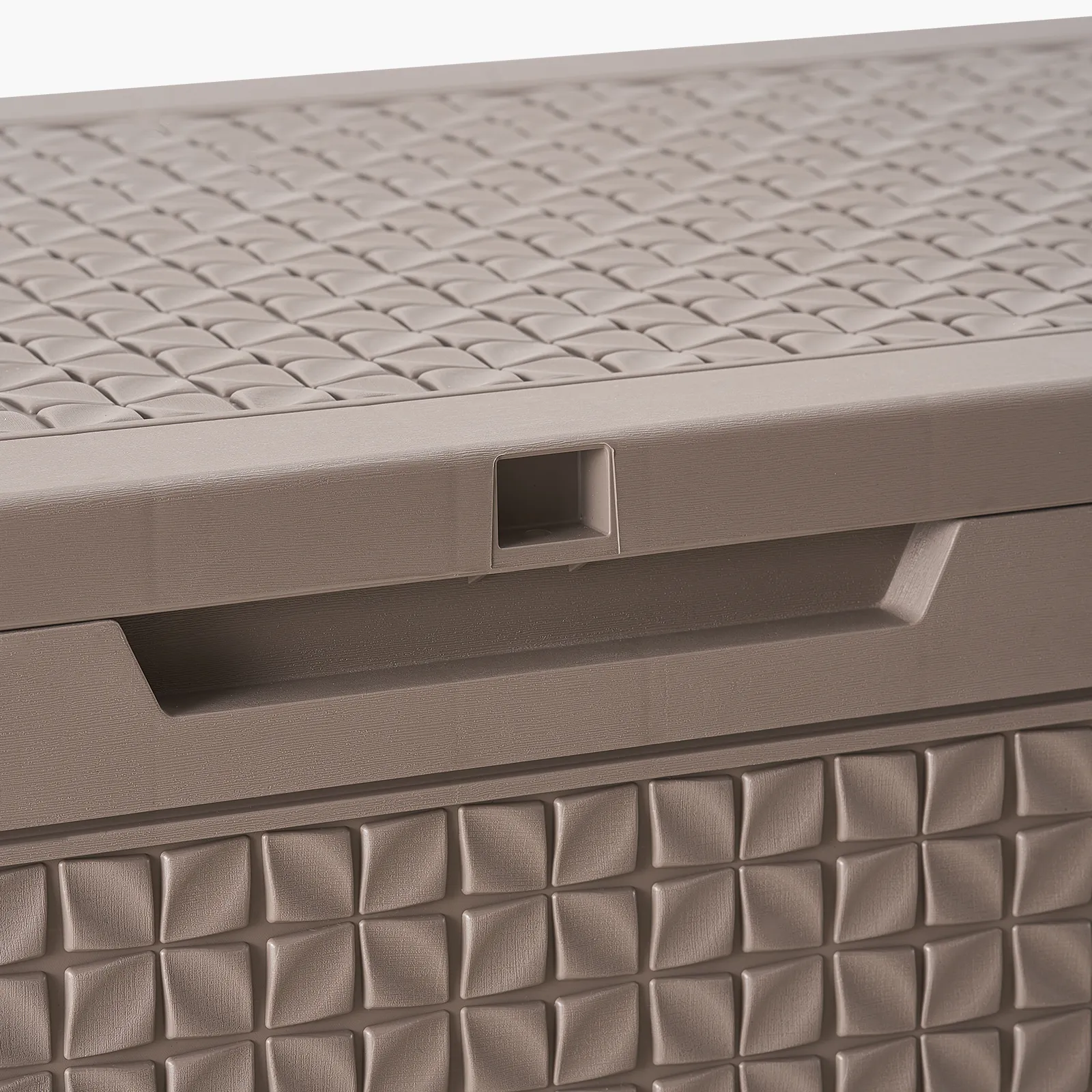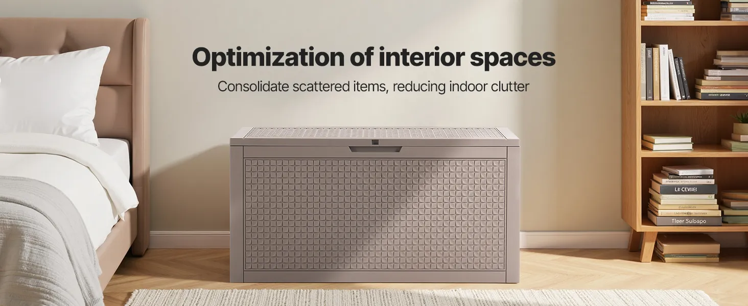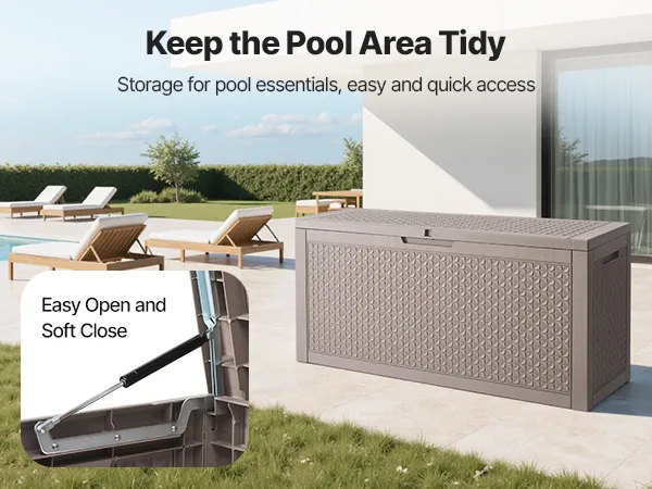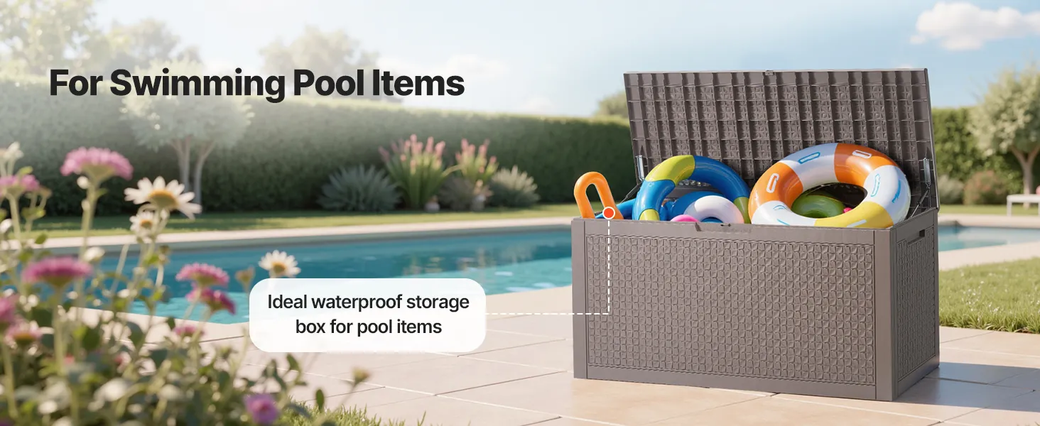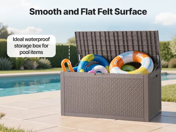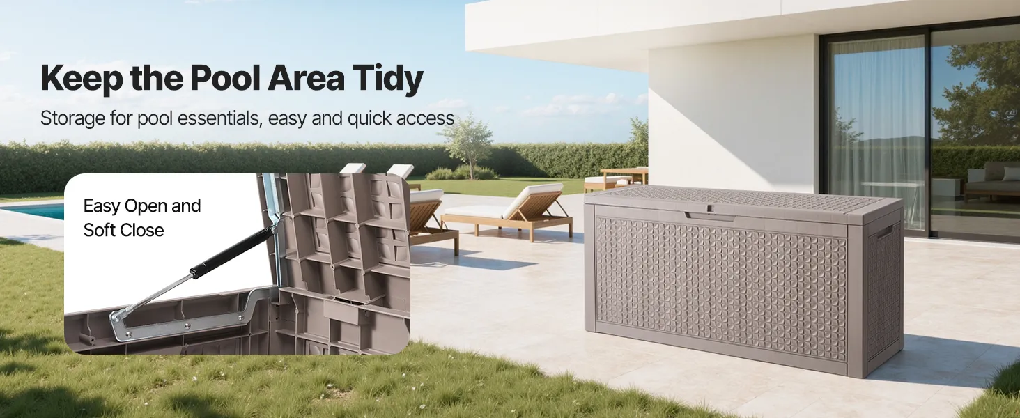 Durable and Stylish: This deck storage box uses waterproof, UV-resistant PP material with a natural rattan look. It’s lightweight, durable, and won’t peel or fade easily over time