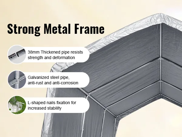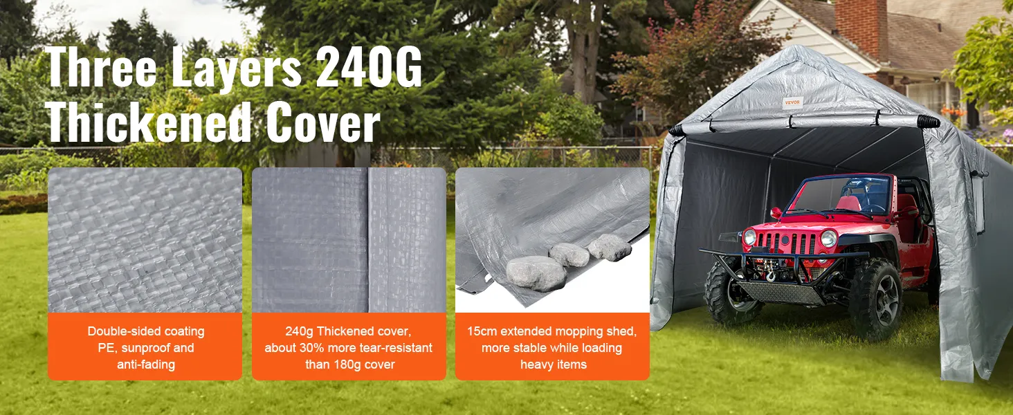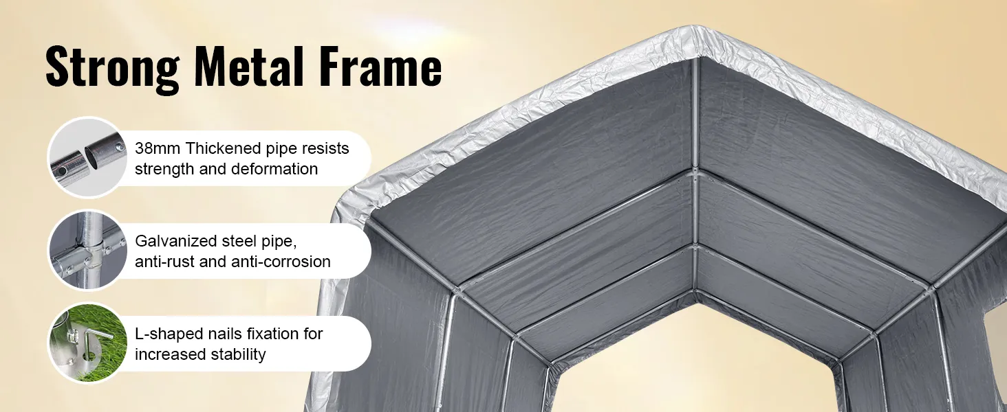 It is perfect for protecting various items. Examples of these items include cars, motorcycles, bikes, and garden tools. The shelter’s robust design ensures your items stay safe. It protects against rain, sun, and other elements. This makes it a reliable choice for vehicle storage. The shelter’s versatility guarantees it fits different storage needs. It can be used for a variety of items without compromising on protection. The shelter's protection provides optimal coverage and security. So, this makes you able to trust that your things are well-protected.