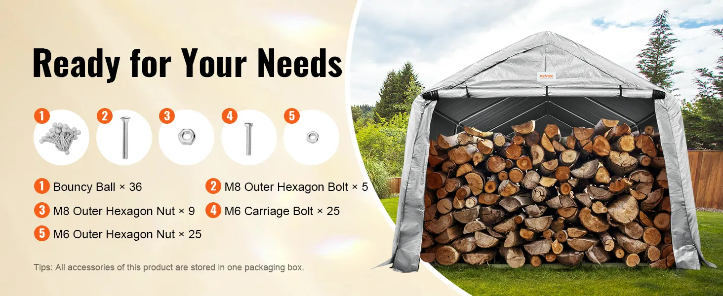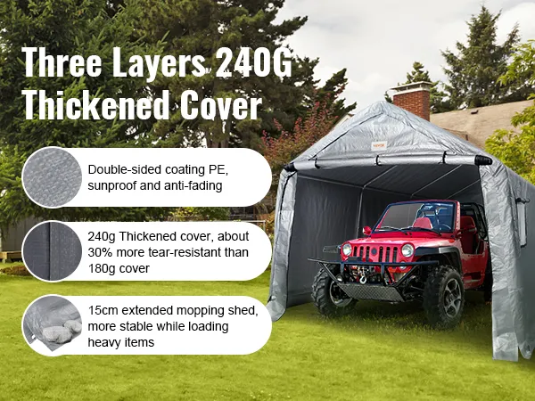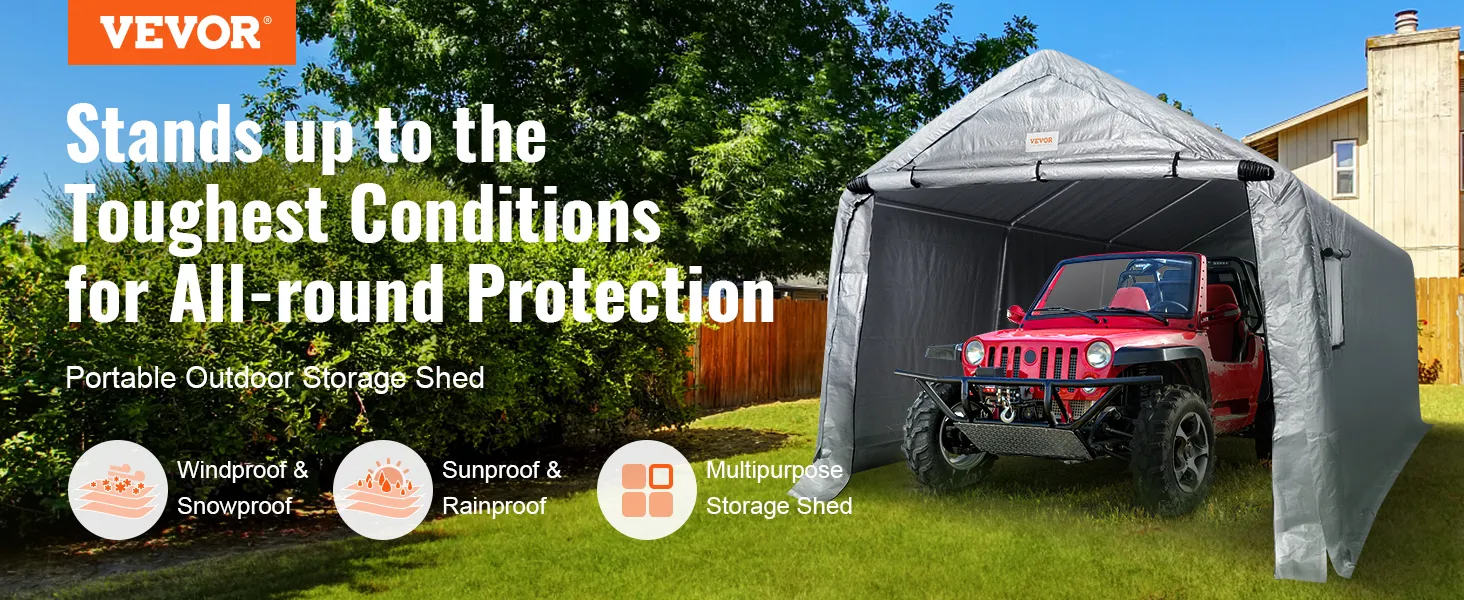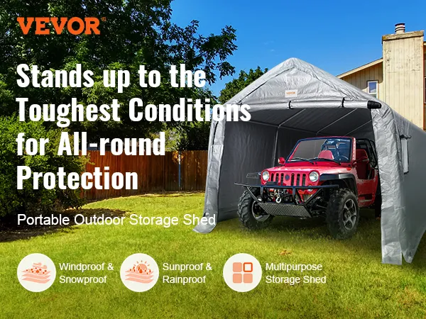 The VEVOR outdoor portable storage shelter is weather-resistant. It's made to withstand rain, wind, and snow. The double-sided coating PE material ensures it stays intact. This makes it ideal for year-round use. You can securely store your items, confident in their protection. The shelter’s durability stands out because it can handle harsh weather conditions without damage. So, you can trust it to keep your stuff safe and dry over time. Therefore, this makes the shelter a practical solution for various weather scenarios. Our shelter's weather-resistant and durable design keeps it performing well all year round.