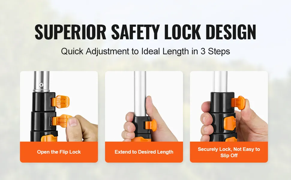 Secure Flip-Lock Mechanism: Features four flip-lock sections for quick, this paint roller extension pole is secure length adjustment, ensuring stability without slipping or unexpected retraction for safer use.