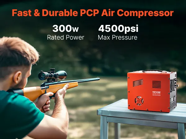 Esta bomba de pistola de aire PCP de 300 W llena eficientemente un cilindro de aire de 0,5 L de 0 a 300 bar en solo 18 minutos, ahorrándote tiempo y manteniéndote preparado para tu próxima aventura.