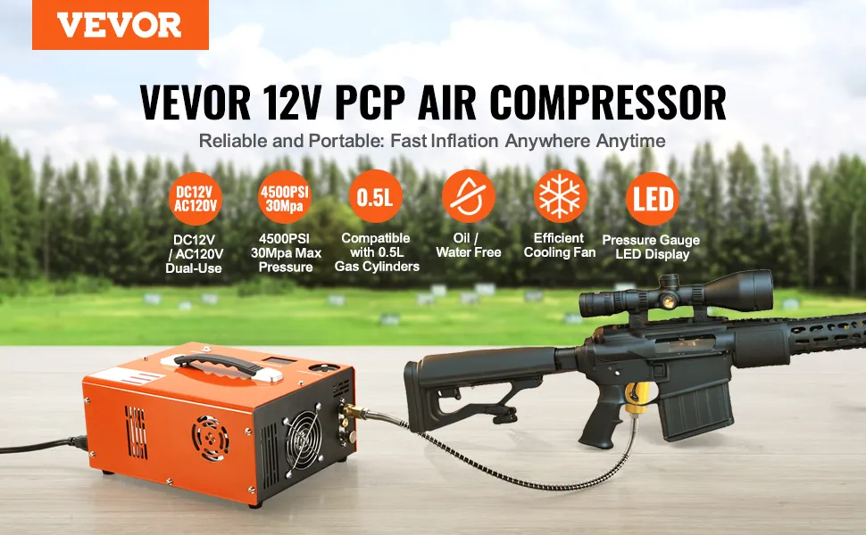 The VEVOR PCP air compressor is made to fill your air tanks quickly and reliably. It can fill a 24 CI tank from 0 to 4500 PSI in about 18 minutes. With consistent performance, it maintains a consistent 35-36°C temperature for safe and efficient operation. This makes it ideal for those who need a dependable and fast air compressor for their own air rifles or paintball tanks. The compressor's quick fill times save you valuable time so you can get back to your activities faster.